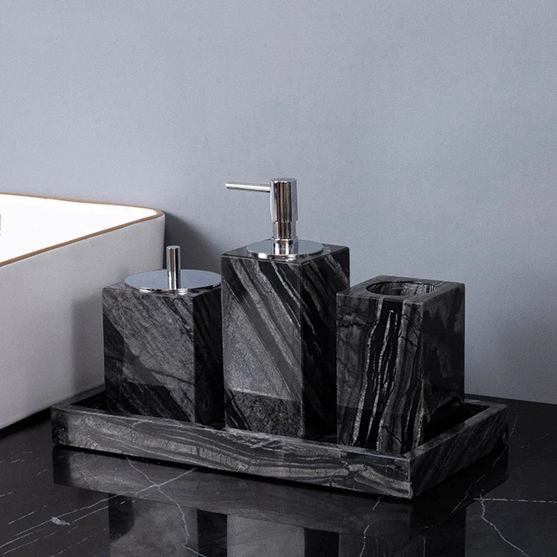 مجموعة حمام DecorBites™ المصنوعة من الرخام بحبيبات الخشب القديمة مع إكسسوارات فاخرة