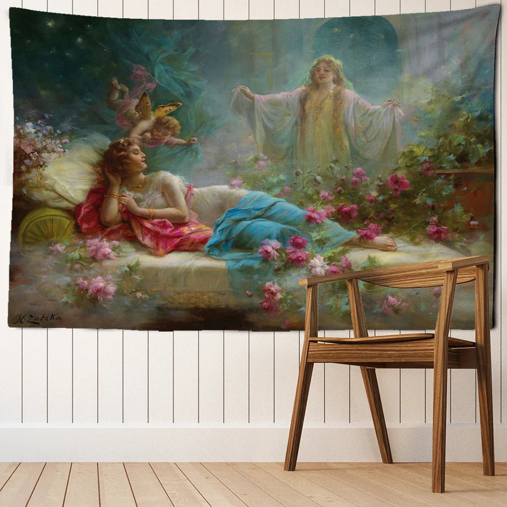 ديكور بايتس™ - لوحة زيتية ضبابية من تصميم الملائكة والجمال، معلقة على الحائط لتزيين الغرفة