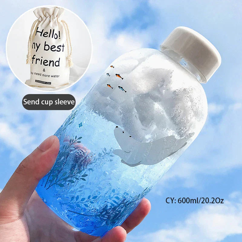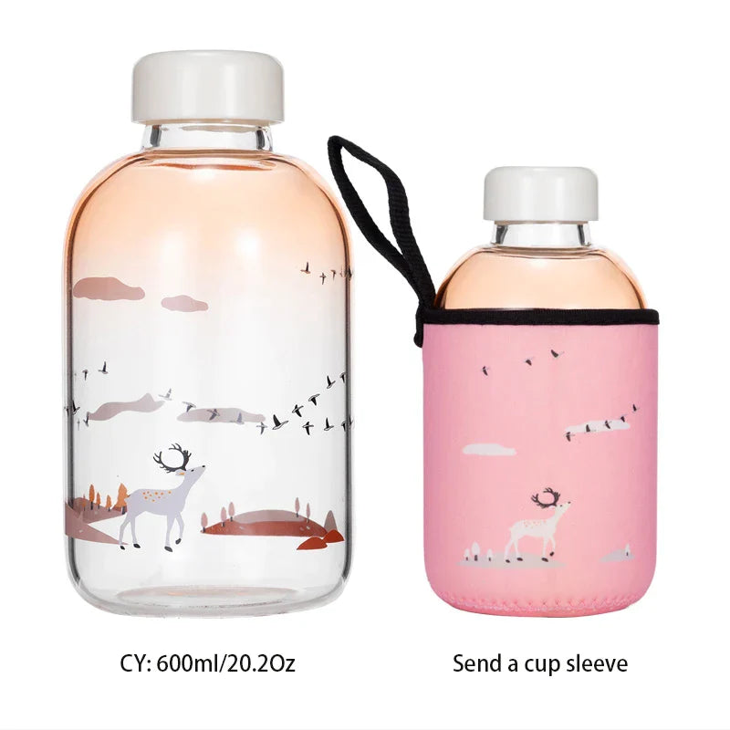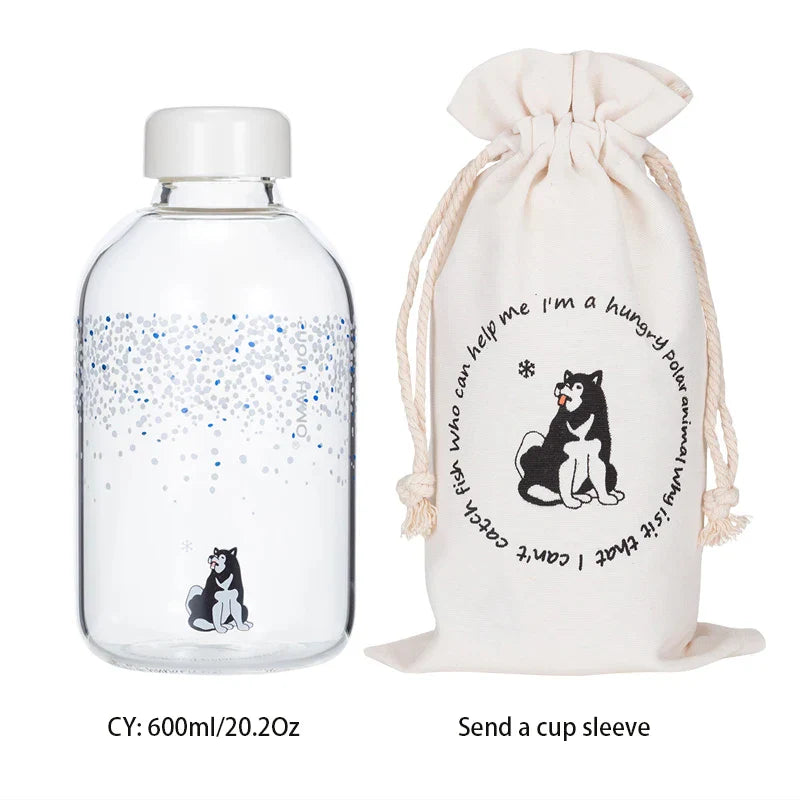 زجاجة مياه زجاجية على شكل حيوان من ديكوربايتس™ مع غلاف | تصميم كاواي لطيف للأنشطة الخارجية