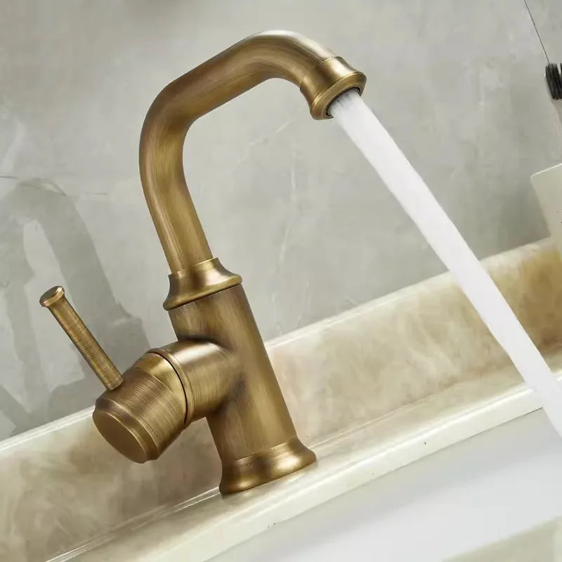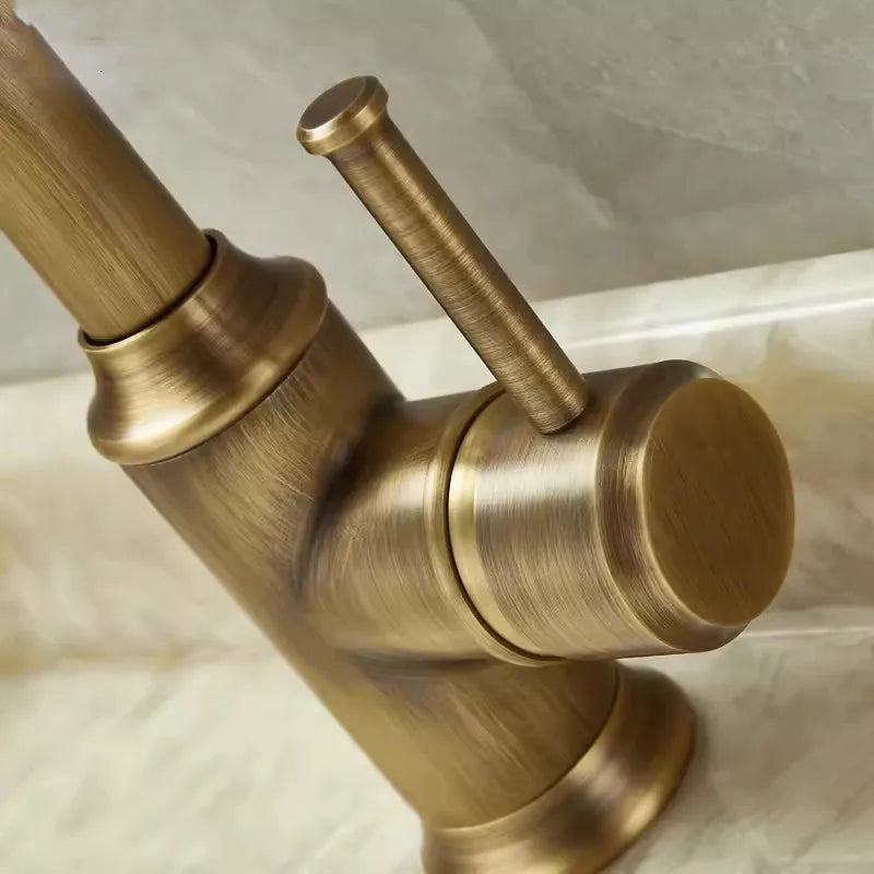 صنبور حوض الحمام DecorBites™ المصنوع من النحاس العتيق، ساخن وبارد، بمقبض واحد