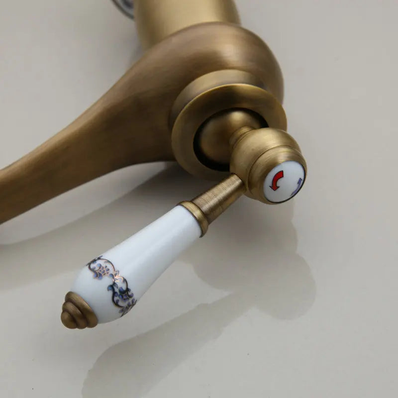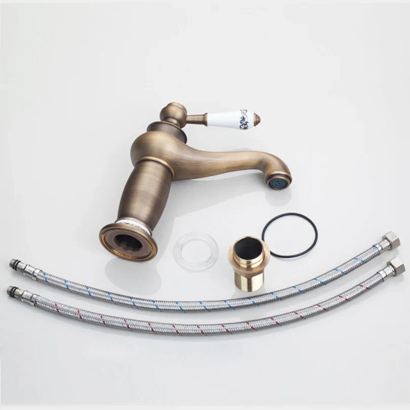صنبور حوض حمام نحاسي عتيق من DecorBites™، مثبت على سطح الحمام، خلاط عتيق، صنابير مغسلة