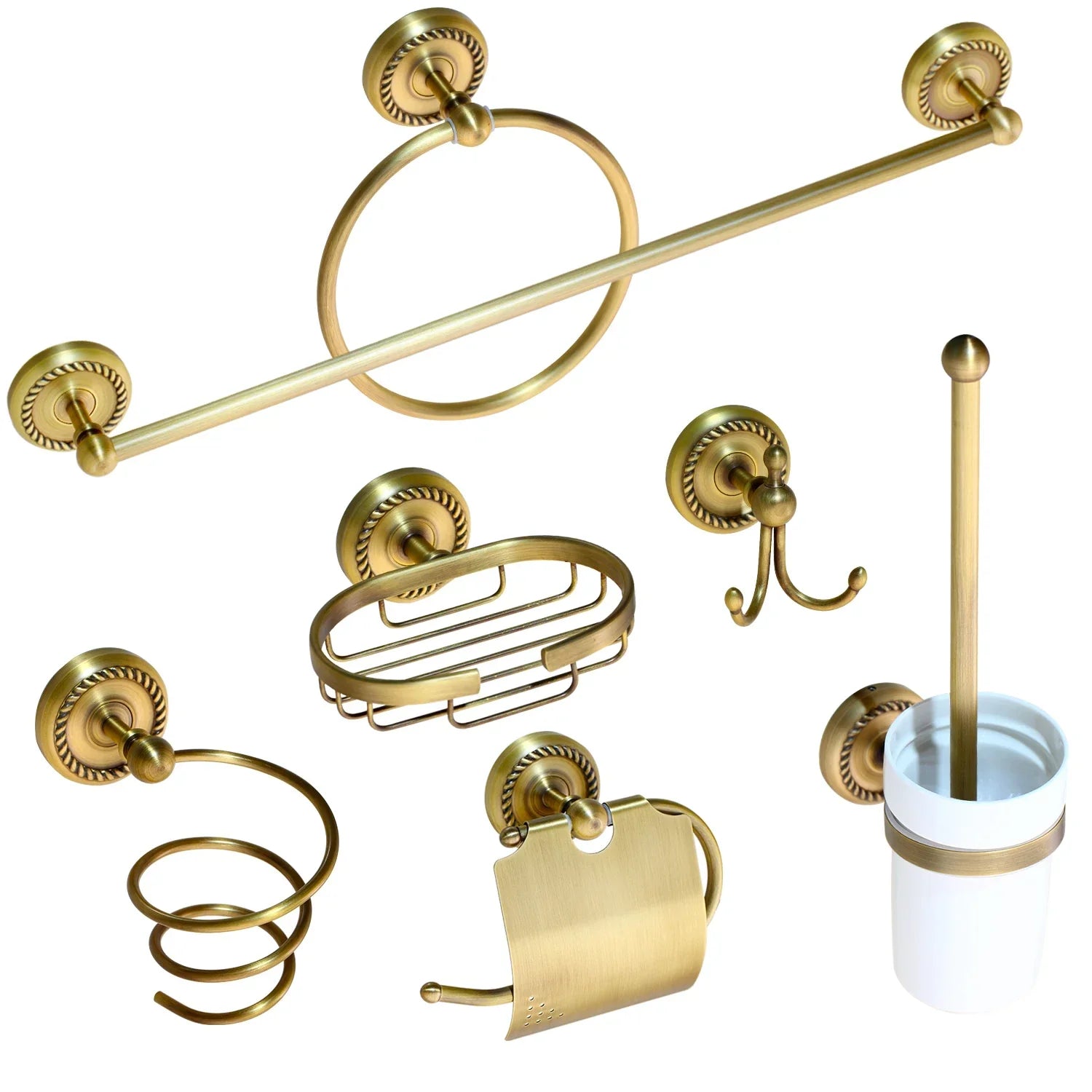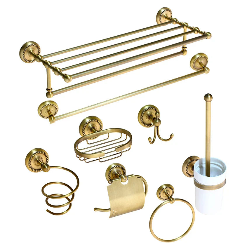 حسّن جمال حمامك مع طقم أدوات الحمام النحاسي العتيق هذا المصنوع بإتقان. ارتقِ بنمط حياتك اليومي مع سحره الخالد ووظائفه العملية. استمتع بمزيج مثالي من الأناقة والعملية مع مجموعتنا الرائعة.