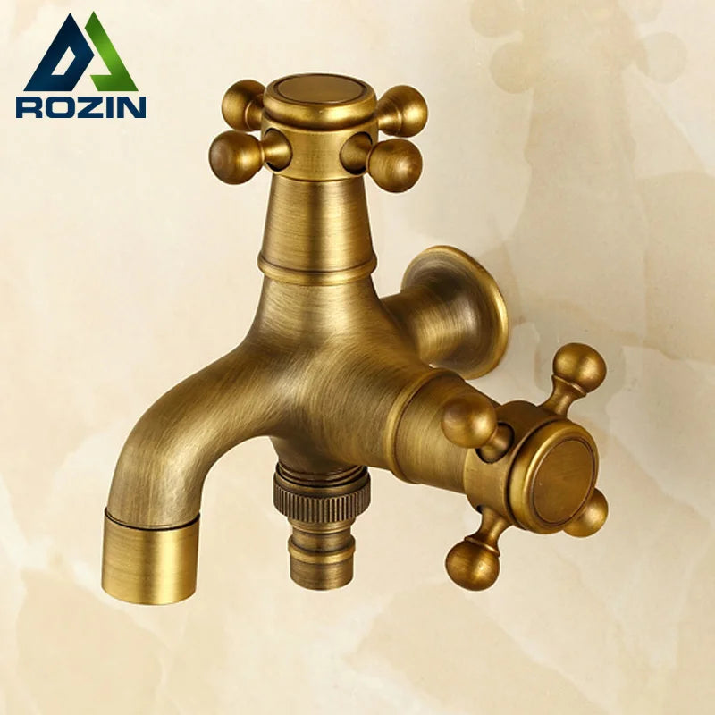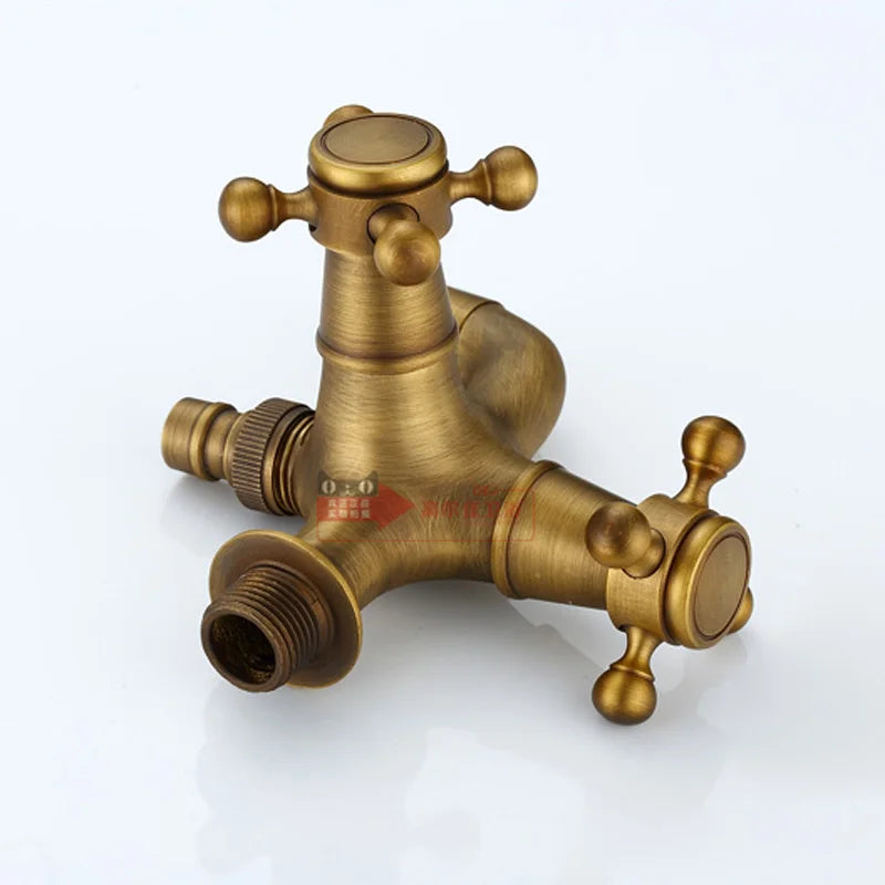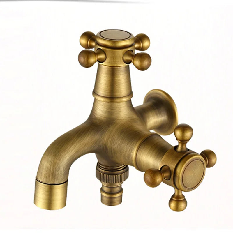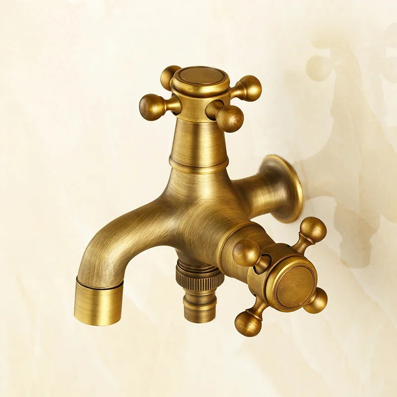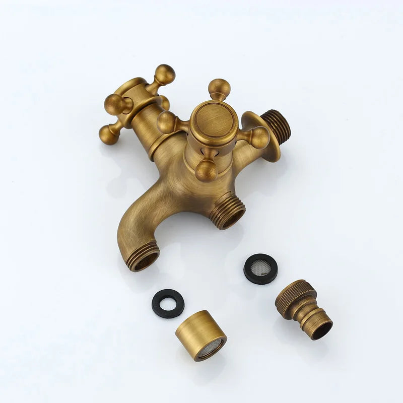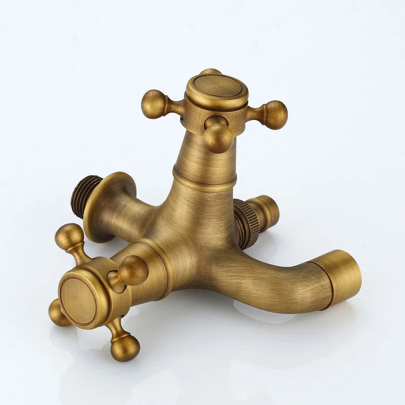 صنابير حمام سباحة DecorBites™ العتيقة المصنوعة من النحاس الأصفر بمقابض متقاطعة مزدوجة مثبتة على الحائط