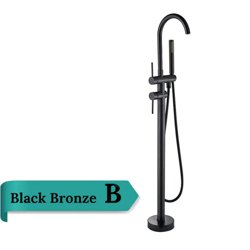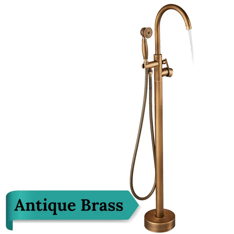 صنبور حوض استحمام نحاسي عتيق مثبت على الأرضية من DecorBites™ مزود بفوهة دوارة وخلاط دش