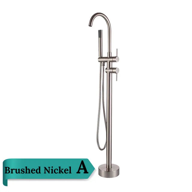 نقدم لك صنبور حوض الاستحمام ذو الفوهة الدوارة المصنوع من النحاس العتيق والمثبت على الأرضية، وهو إضافة خالدة إلى حمامك تجمع بسلاسة بين الأسلوب الكلاسيكي والوظائف الحديثة.