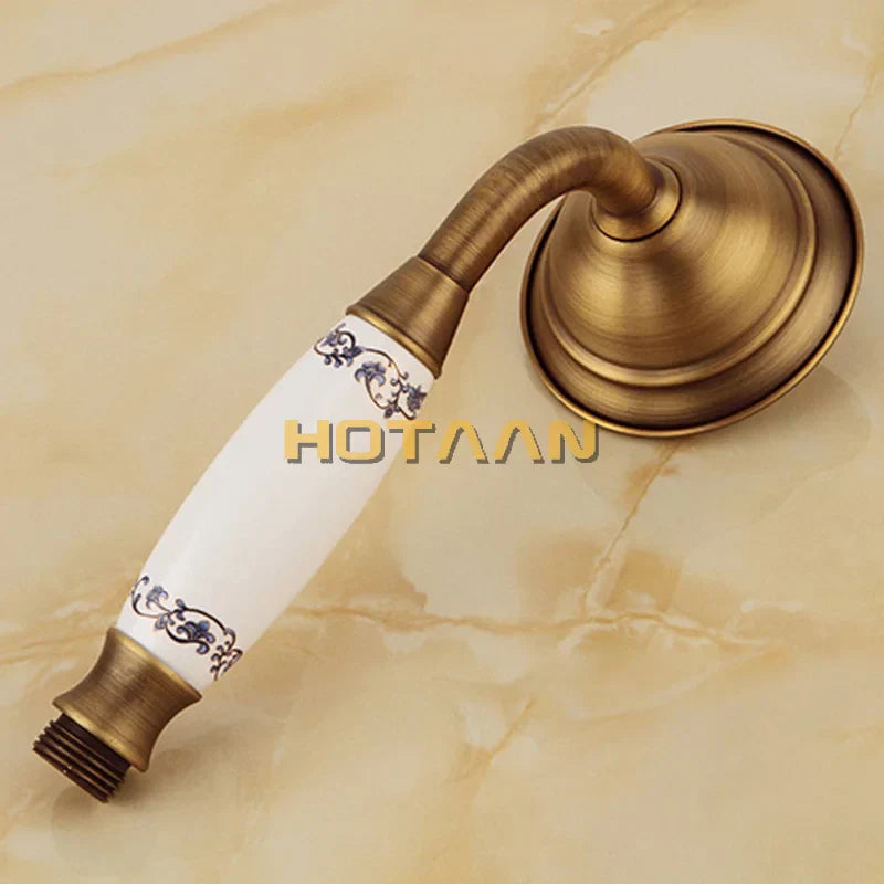 نقدم لكم طقم رأس الدش اليدوي المصنوع من النحاس العتيق - صنبور دش مثبت على الحائط، إضافة مميزة لحمامكم. صُمم هذا الطقم بعناية فائقة وجودة عالية، ليضفي لمسة كلاسيكية راقية على أي مساحة.