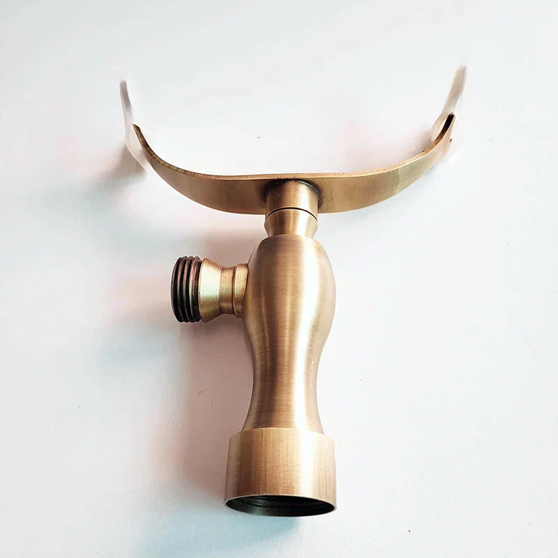 نقدم لكم حامل دش اليد النحاسي العتيق المُثبّت على الحائط، وهو إضافة فاخرة لمجموعة إكسسوارات حمامكم. صُنعت هذه القطعة الرائعة بدقة وإتقان، وتُضفي لمسةً من الأناقة والرقي في كل تفاصيلها.