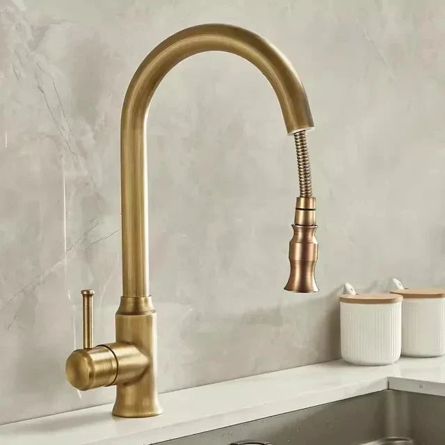 نقدم لك صنبور المطبخ النحاسي العتيق، وهو إضافة مذهلة لمطبخك ويتميز بخلاط حوض يدور 360 درجة مصمم ليجمع بين الأناقة والوظيفة.