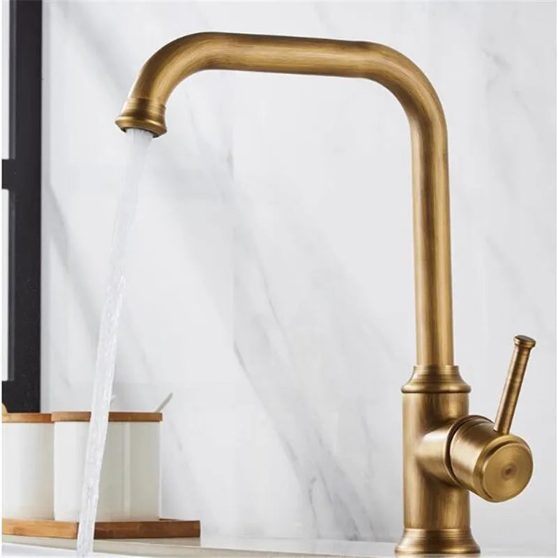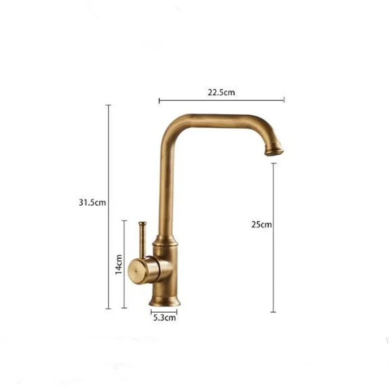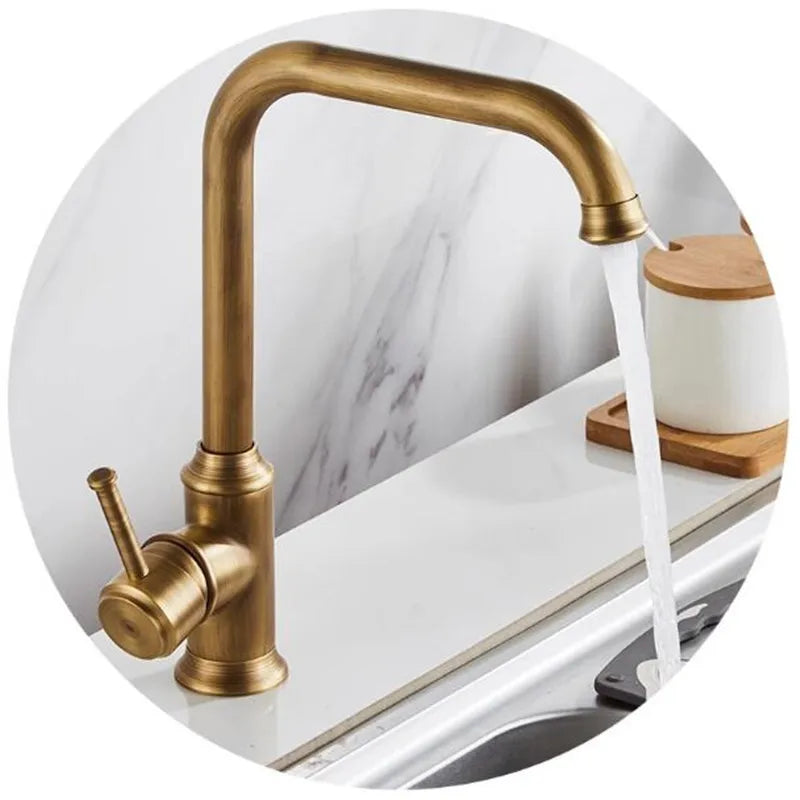 صنبور مطبخ نحاسي عتيق من DecorBites™، خلاط حوض دوار بزاوية 360 درجة، صنبور ساخن وبارد