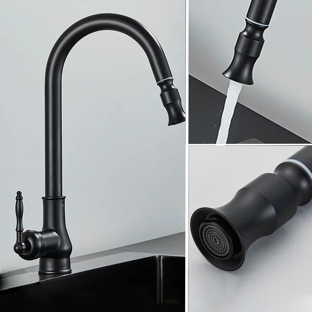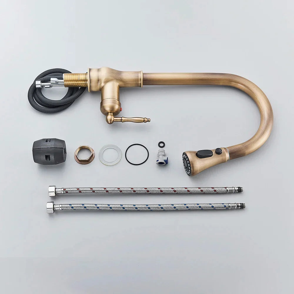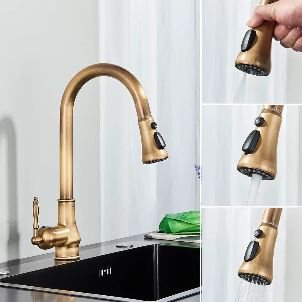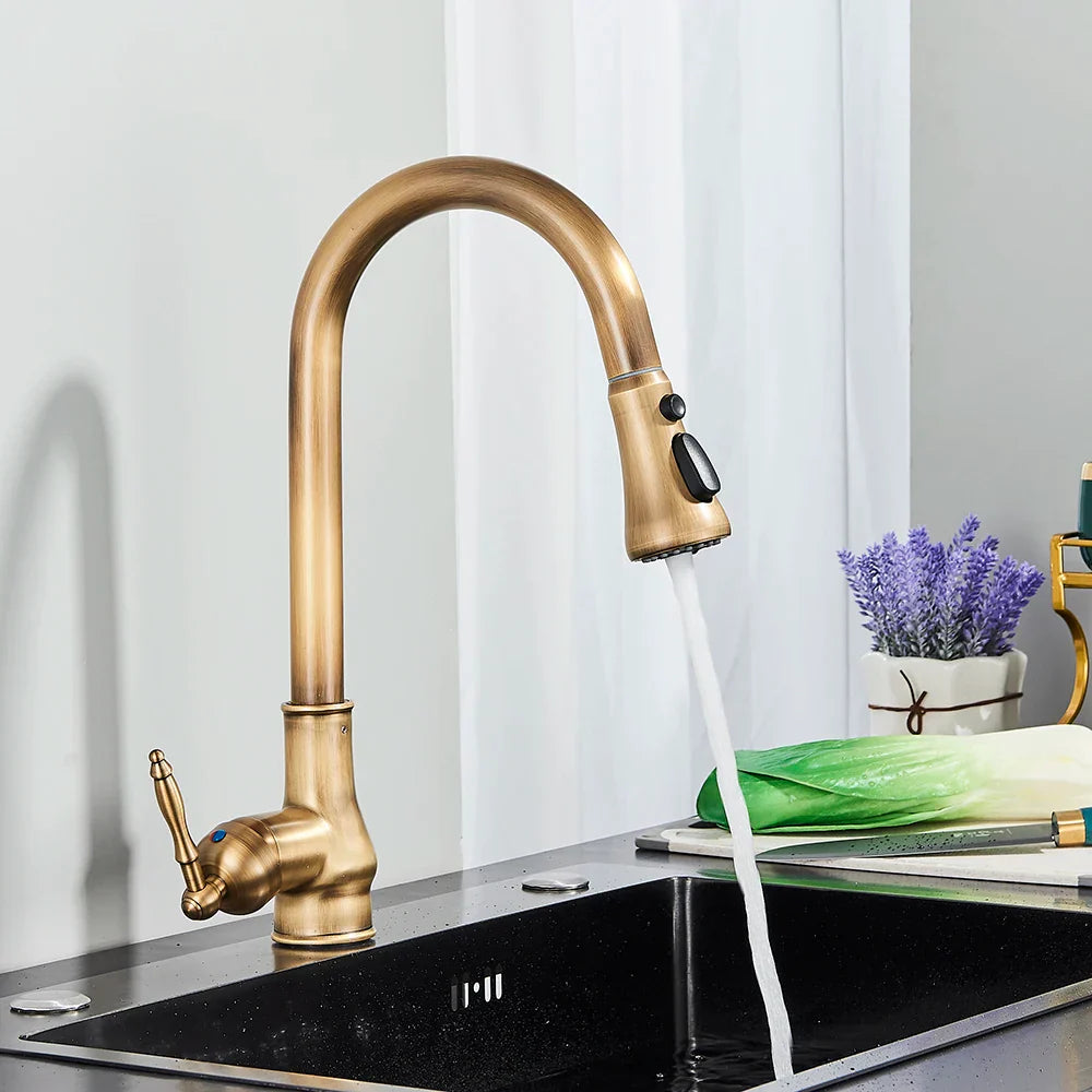 صنبور مطبخ من النحاس العتيق من DecorBites™ مع صنبور سحب لأسفل ومقبض واحد