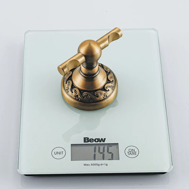 خطاف رداء الحمام النحاسي العتيق سهل التركيب باستخدام طريقة اللصق بالمسامير، وهو ليس عمليًا فحسب، بل قطعة أنيقة ومميزة. تصميمه الأنيق والخالد يُكمل أي حمام، من التقليدي إلى الحديث.