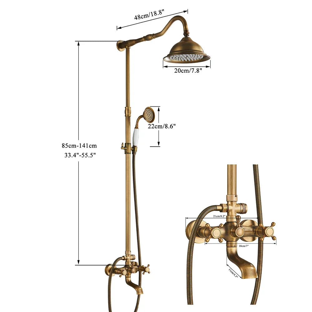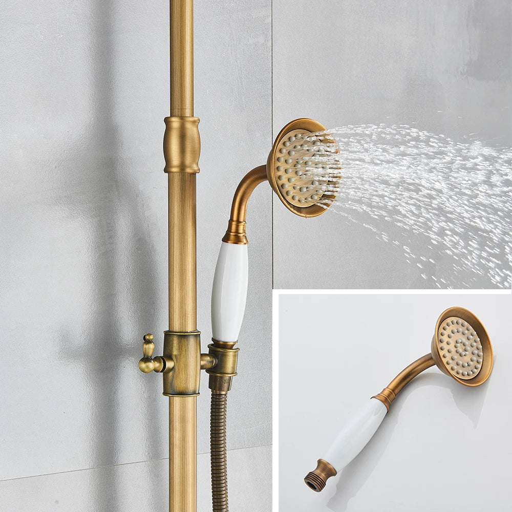 نقدم لكم صنبور دش نحاسي عتيق مع رشاش يدوي من السيراميك ورأس رش بطول ٨ بوصات، إضافة رائعة لأي حمام عصري. صُمم هذا الصنبور بعناية فائقة، ليُجسّد الفخامة والأناقة.