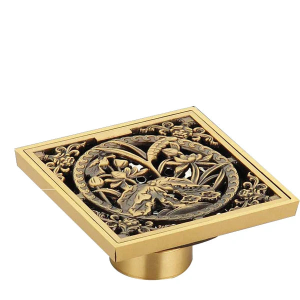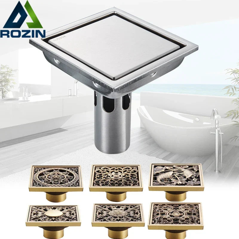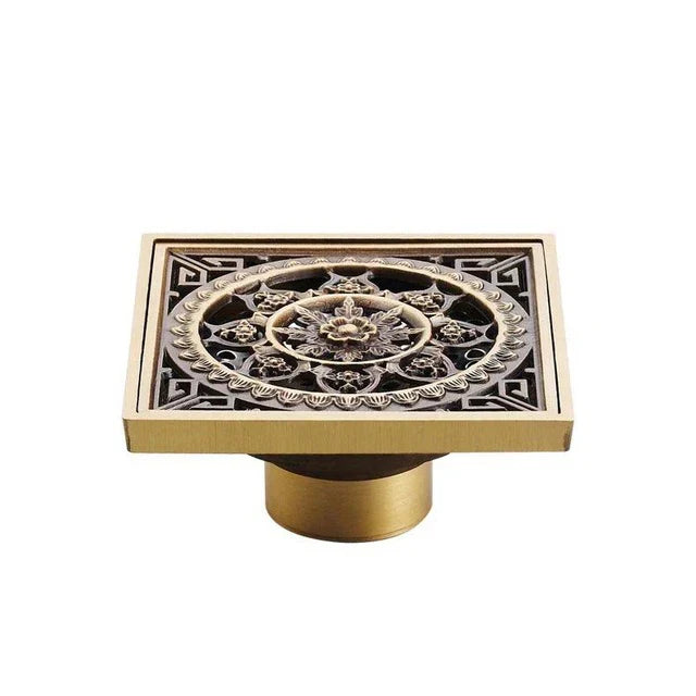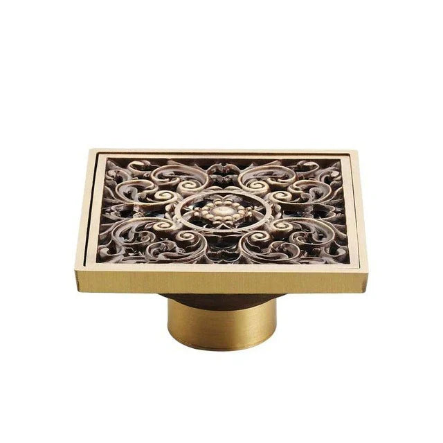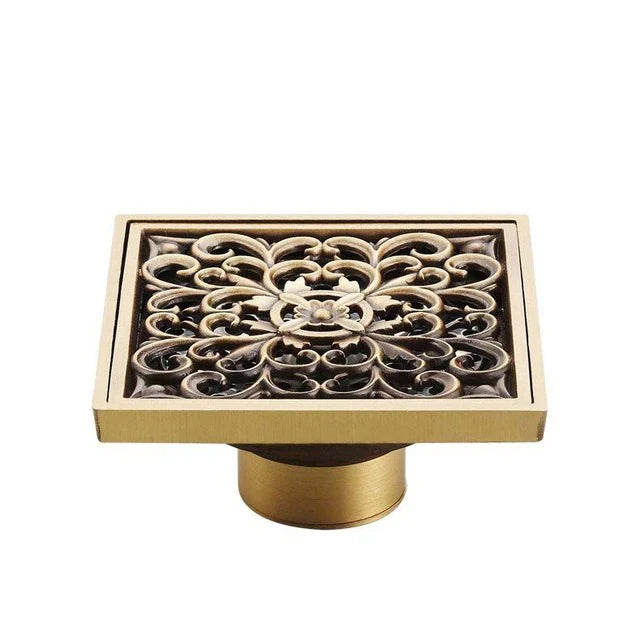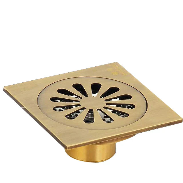 نقدم لك غطاء مصفاة نفايات مربعة مقاس 10 سم لأرضية الدش المصنوعة من النحاس العتيق، وهي قطعة مصنوعة بشكل جميل تضيف الأناقة والوظيفة إلى حمامك.