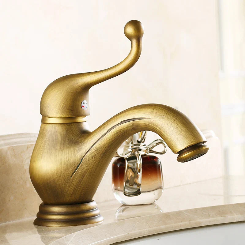 صنبور حوض الحمام ذو المقبض الواحد المصنوع من النحاس العتيق DecorBites™.