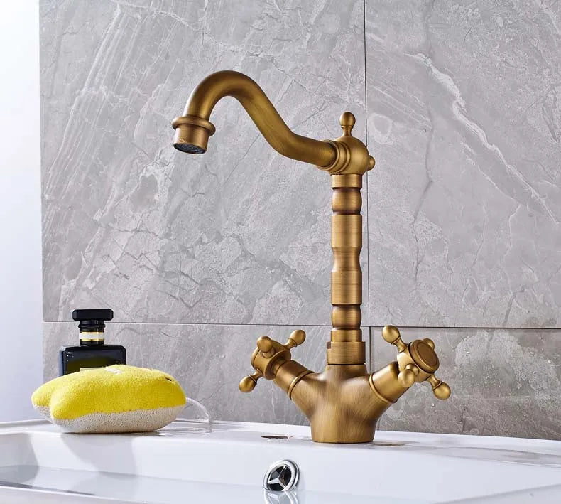 نقدم لك خلاط حوض المطبخ ذو المقبض الواحد المصنوع من النحاس العتيق - مزيج مثالي بين الأناقة والوظيفة لمطبخك.