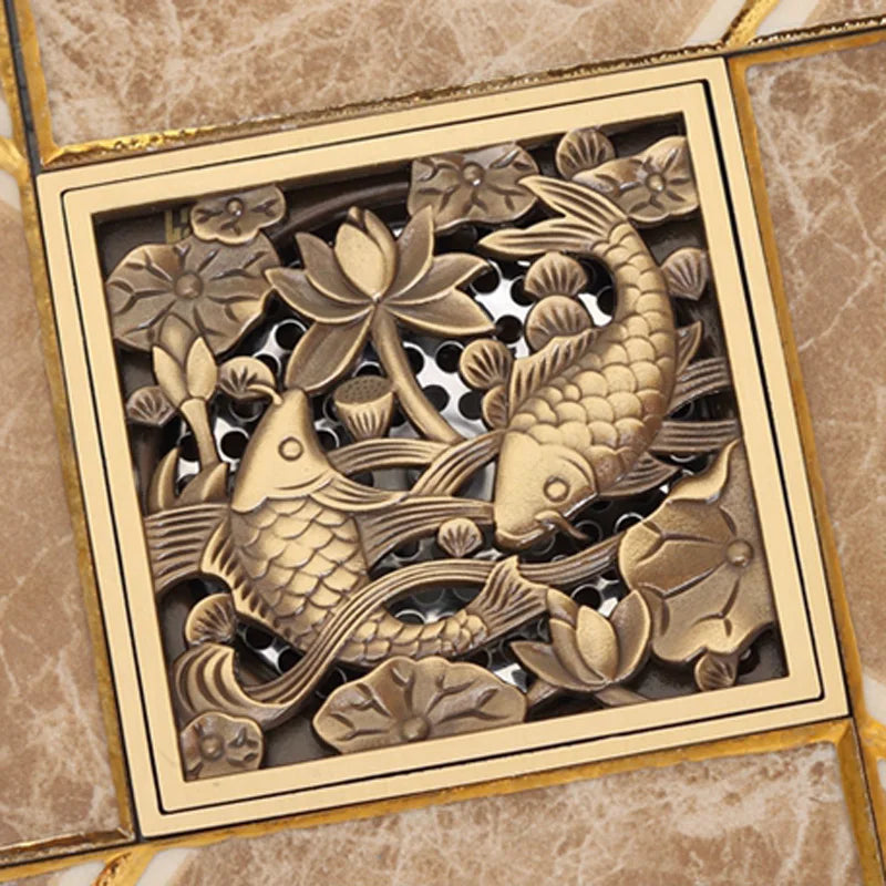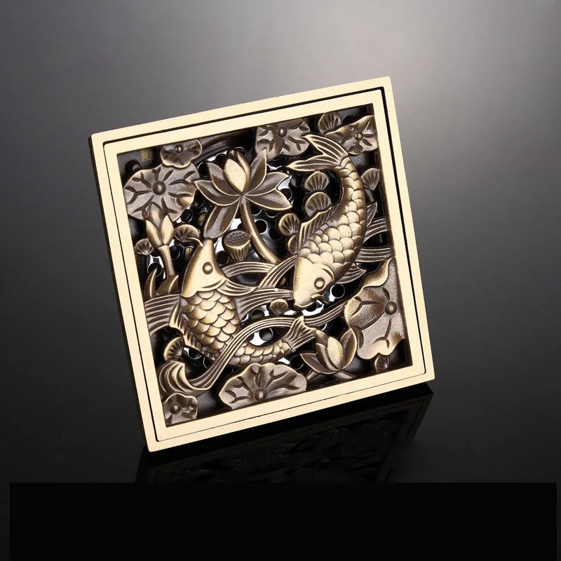 حسّن حمامك مع هذه المصفاة الرائعة التي تُجسّد الفخامة والرقي. حسّن مساحتك بسحرها الخالد مع مصفاة الشعر النحاسية العتيقة المربعة المنحوتة على شكل سمكة، وارتقي بتجربة حمامك إلى مستوى جديد كليًا.