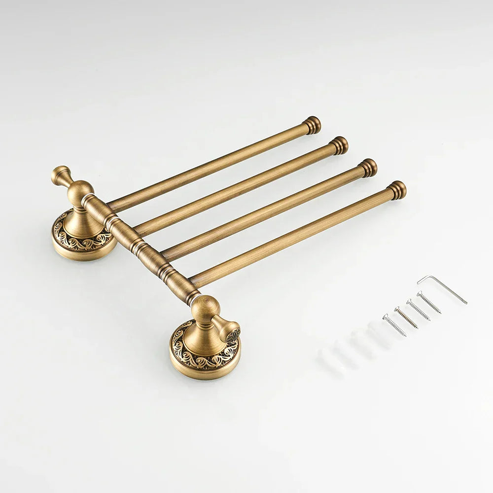حامل مناشف من النحاس العتيق من DecorBites™، حامل أرفف حائط للحمام من 4 طبقات، حامل قضبان وشماعات سراويل