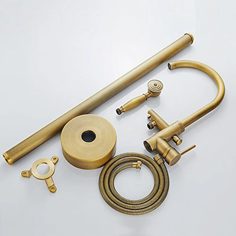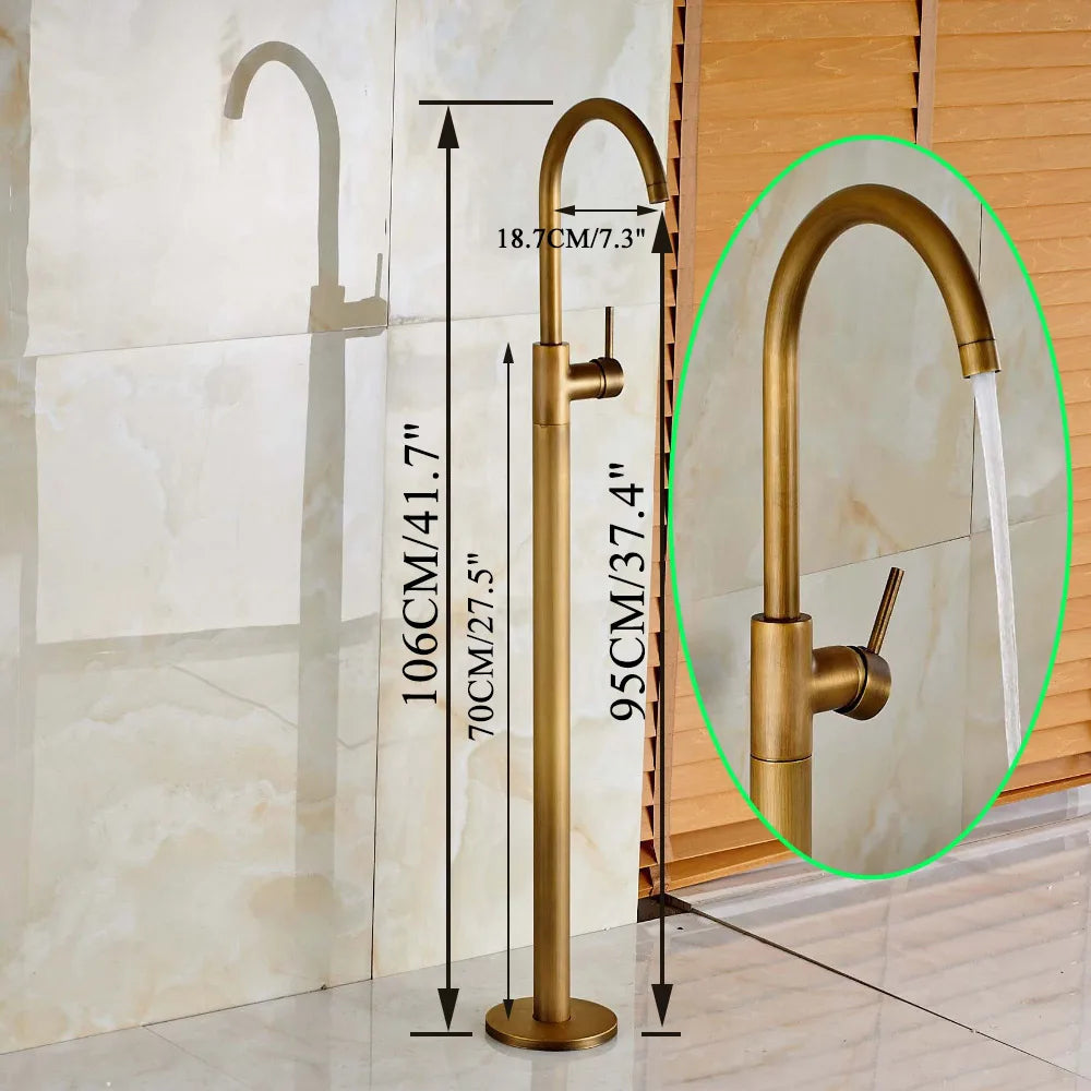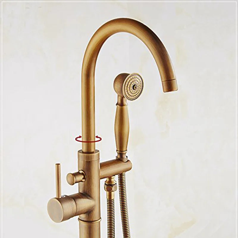 صنبور حوض استحمام نحاسي عتيق من DecorBites™ مزود بفوهة دوارة وخلاط ساخن وبارد