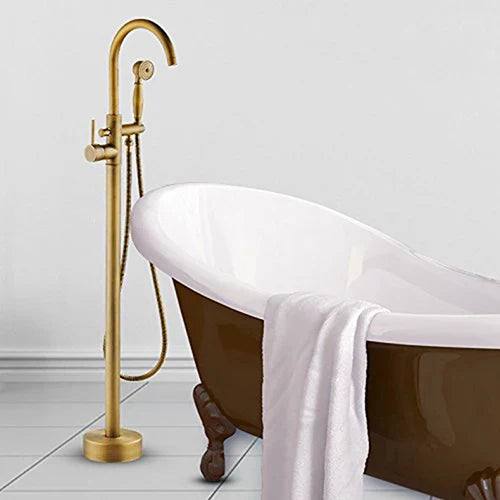 صُنع هذا الصنبور الأرضي من أجود الخامات، ويتميز بفوهة دوارة ومقبض واحد لسهولة التحكم في درجة الحرارة وتدفق الماء. يضفي لمسة النحاس العتيقة لمسة من السحر الكلاسيكي، بينما يُكمل تصميمه الأنيق والعصري مجموعة واسعة من أنماط الحمامات.