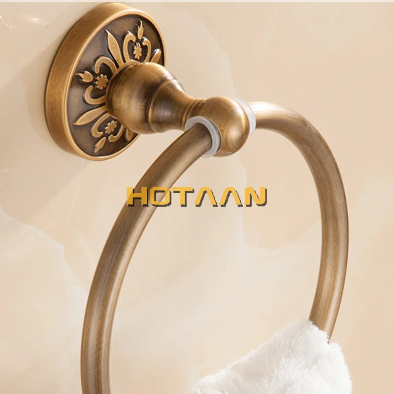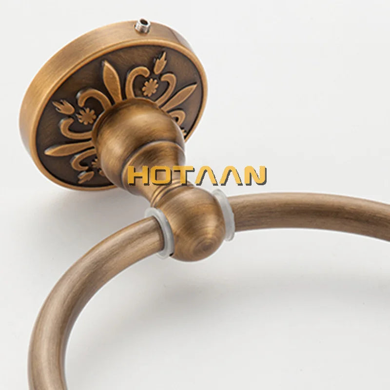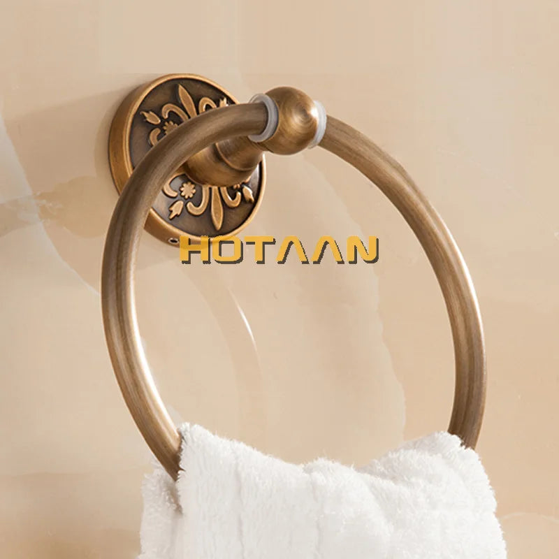نقدم لكم حامل المناشف الدائري المُثبّت على الحائط من النحاس العتيق - إضافةٌ خالدةٌ لديكور حمامكم. مصنوعٌ من الألومنيوم عالي الجودة بلمسة برونزية فاخرة، يُضفي هذا الحامل لمسةً من الأناقة والرقي.