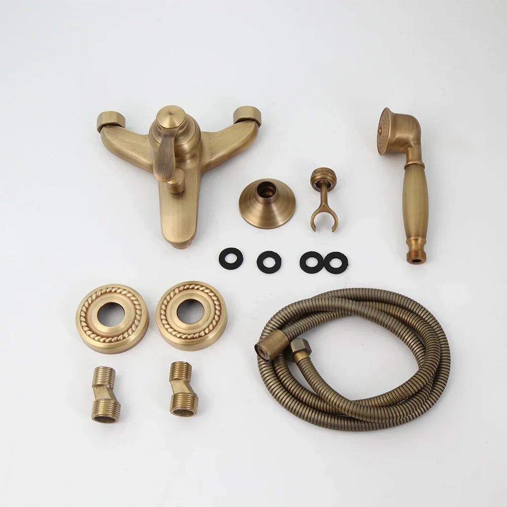 نقدم لكم طقم حنفيات الدش الجدارية النحاسية العتيقة مع رأس دش يدوي، إضافة رائعة لحمامكم، تُضفي عليه لمسةً من الأناقة والرقي. صُممت هذه الحنفيات بعناية فائقة، لترتقي بتجربة استحمامكم إلى آفاقٍ من الفخامة.