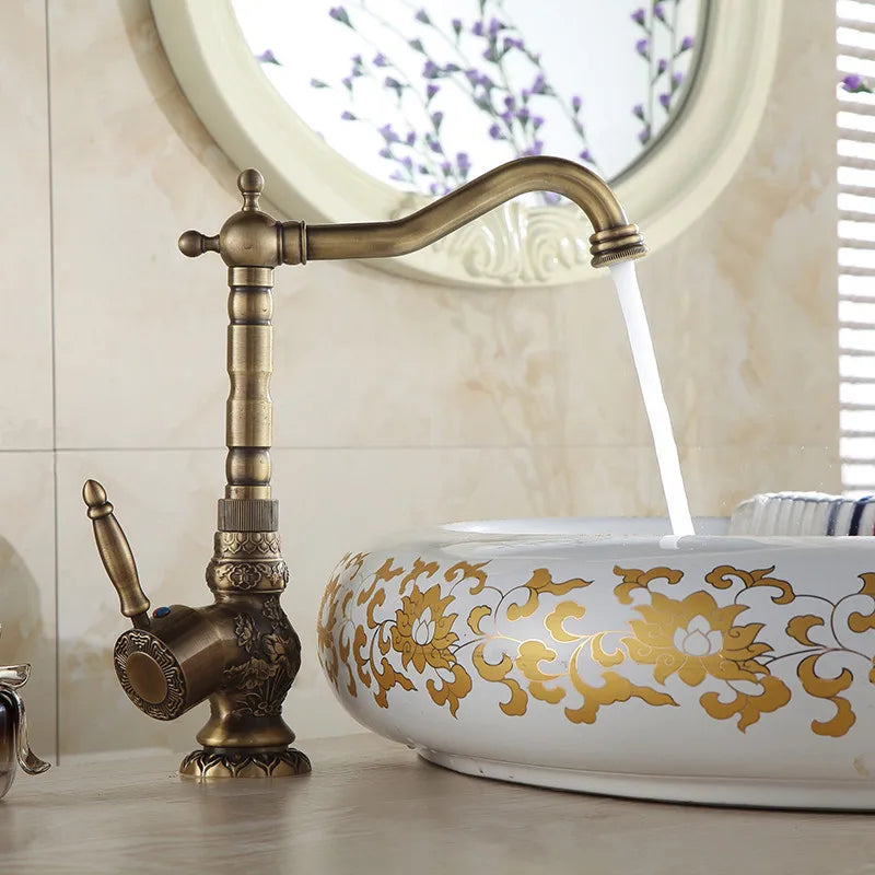 يتميز صنبور حوض البرونز العتيق بتصميم عصري بفتحة واحدة، مما يجعله سهل التركيب والاستخدام. يوفر الصنبور الدوار بزاوية 60 درجة مرونة وراحة، وهو مثالي لأي حمام.