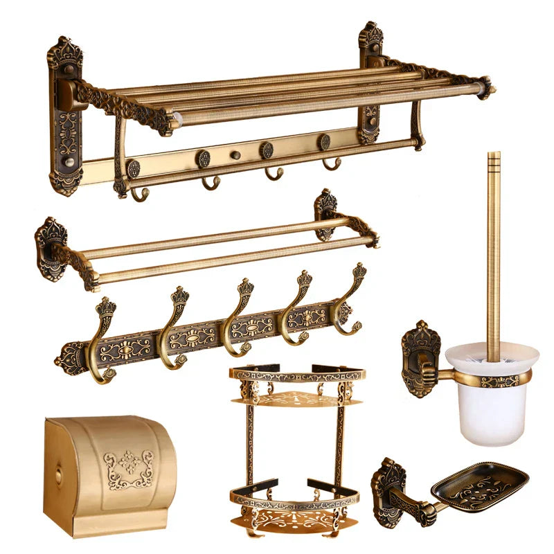 عزّز جمال حمامك مع طقم إكسسوارات الحمام المصنوع من الألومنيوم المنحوت باللون البرونزي العتيق. كل قطعة مصنوعة بعناية فائقة لضمان المتانة والأناقة، مما يضمن استخدامًا طويل الأمد وجمالًا أنيقًا. تفاصيل النحت الدقيقة تضفي لمسة فنية، مما يجعل هذه المجموعة قطعةً مميزةً في أي حمام.