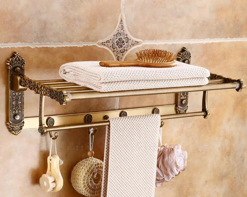 مجموعة إكسسوارات الحمام DecorBites™ المصنوعة من الألومنيوم المنحوت باللون البرونزي العتيق: رف مناشف، وحامل ورق، وخطافات