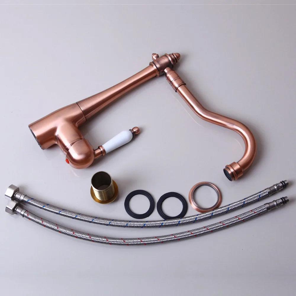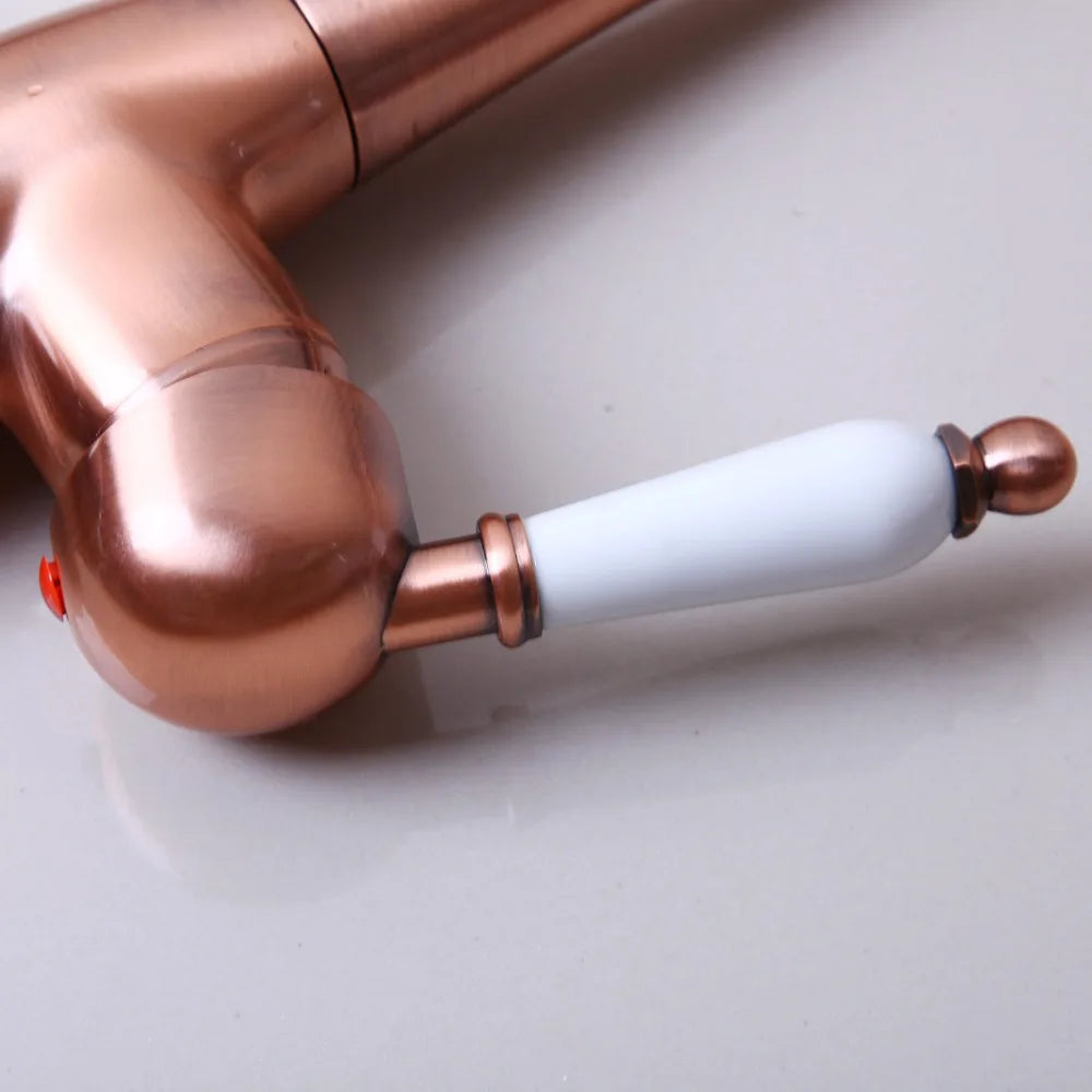 نقدم لكم خلاط حوض المطبخ النحاسي العتيق بمقبض سيراميك. ارتقِ بمطبخك بهذه القطعة الرائعة التي تجمع بين التصميم الخالد والوظائف العصرية.