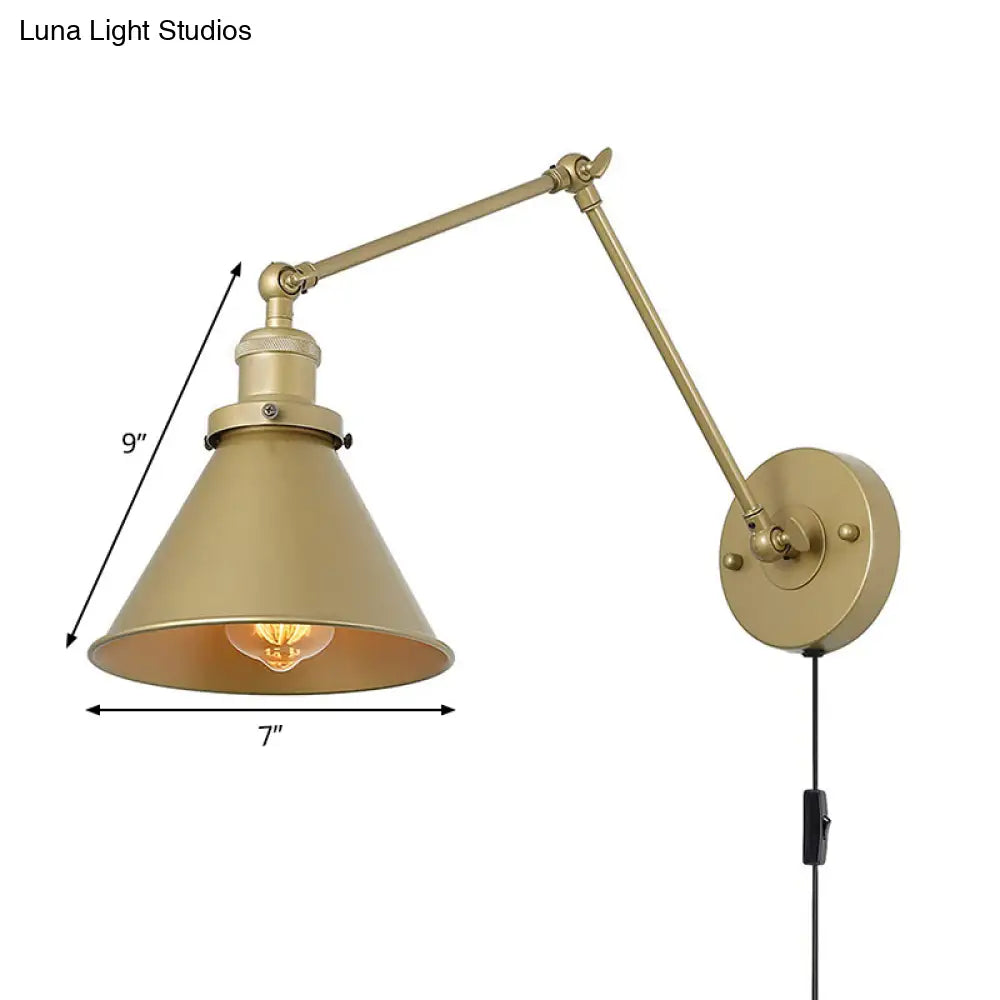 مصباح حائطي مخروطي معدني عتيق من DecorBites™ مع ذراع متأرجح - مصباح حائطي نحاسي قابل للتوصيل/بدون توصيل