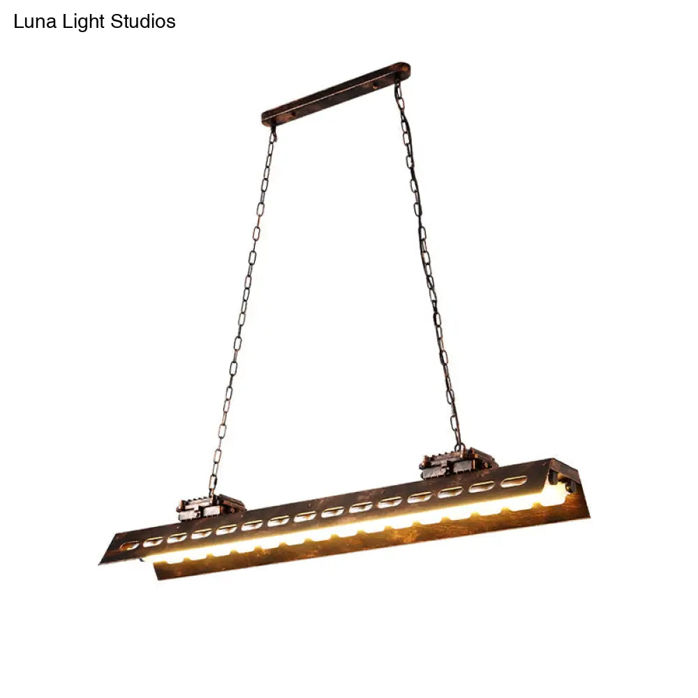 وحدة إضاءة مستطيلة من الحديد العتيق لجزيرة المطعم من DecorBites™ - لمسة نهائية من الصدأ، 2 لمبة، قابلة للتعليق في السقف