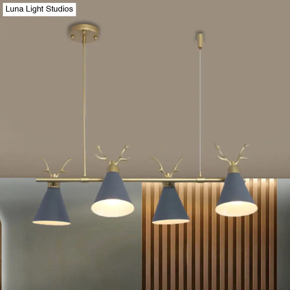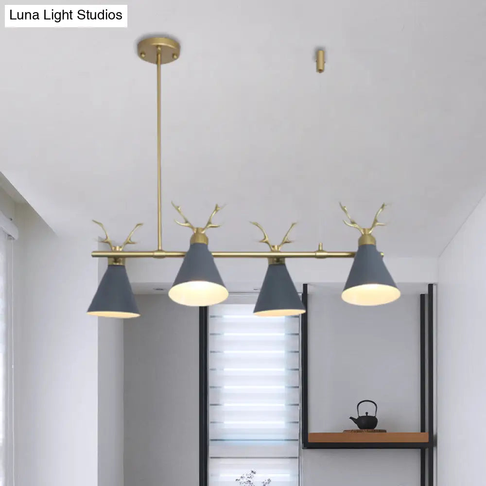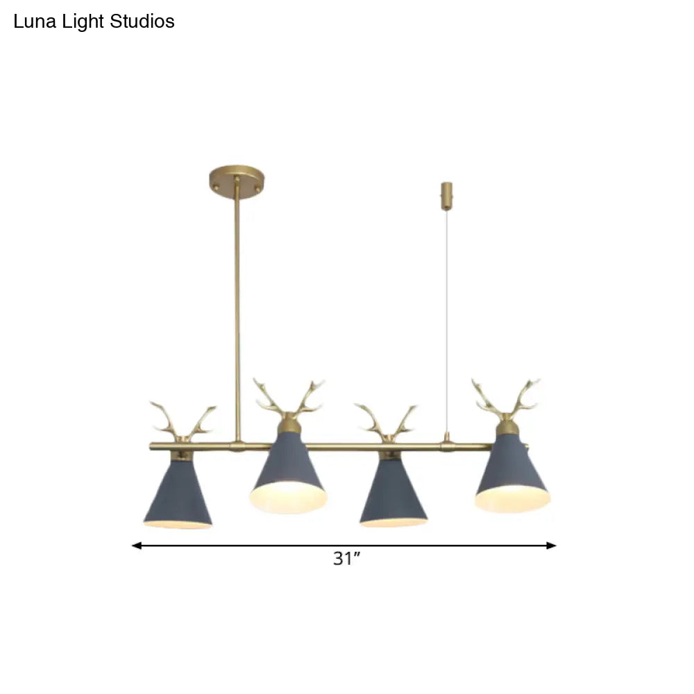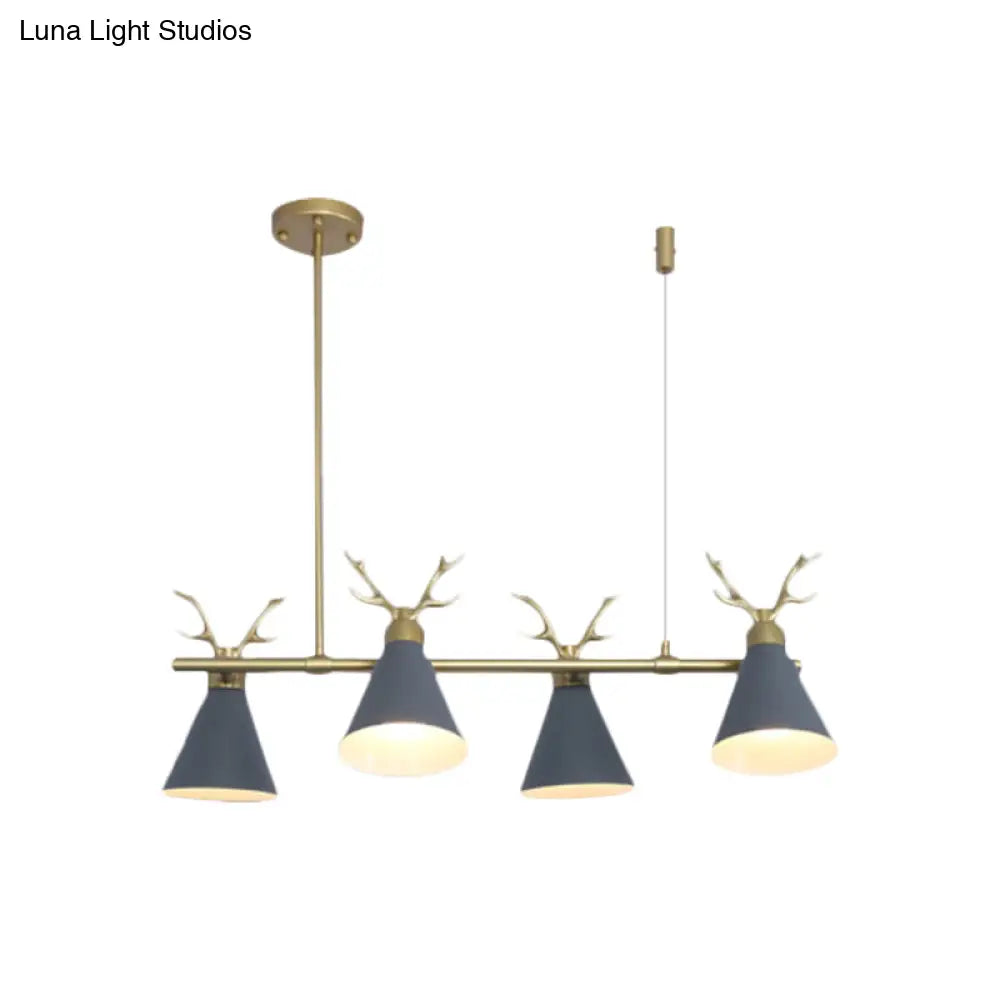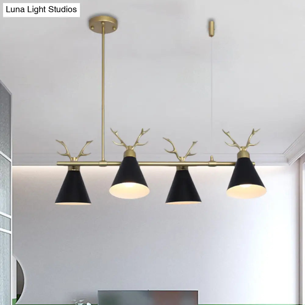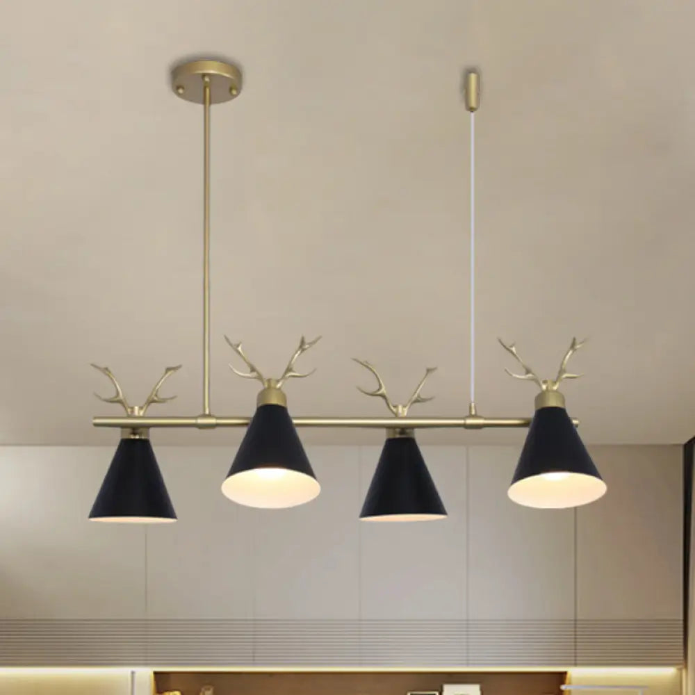 ثريا ديكوربايتس™ بتصميم قرون الوعل - إضاءة جزيرة المطعم (أسود، رمادي، أبيض)