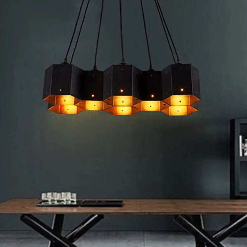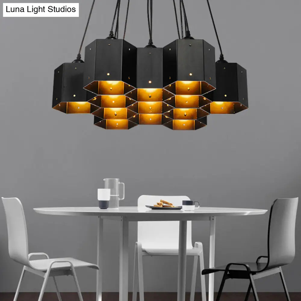 ديكوربايتس™ مصباح سقف على شكل جزيرة قرص العسل باللون الأسود المعدني من آرت ديكو لغرفة الطعام