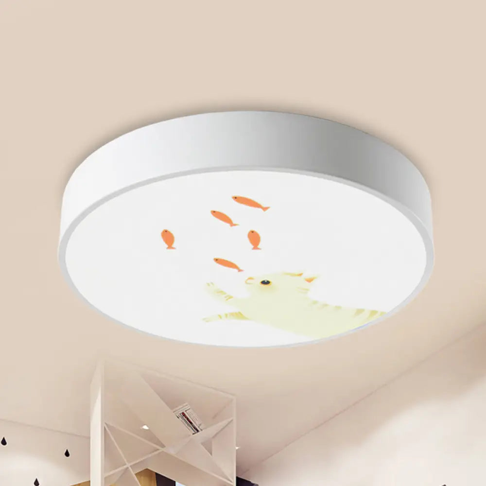 ديكوربايتس™ - مصباح سقف LED على شكل زرافة لغرفة الأطفال: دائري مدمج باللون الأبيض
