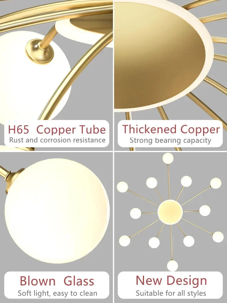 مصباح سقف زجاجي على شكل كرة من DecorBites™ باللون الذهبي لغرفة المعيشة وغرفة الطعام وغرفة النوم من DecorBites™