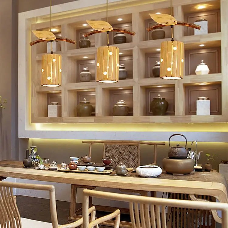 ثريا ديكوربايتس™ الفنية من الخيزران: مصابيح كورية عتيقة لغرفة المعيشة في بيت الشاي والمطعم