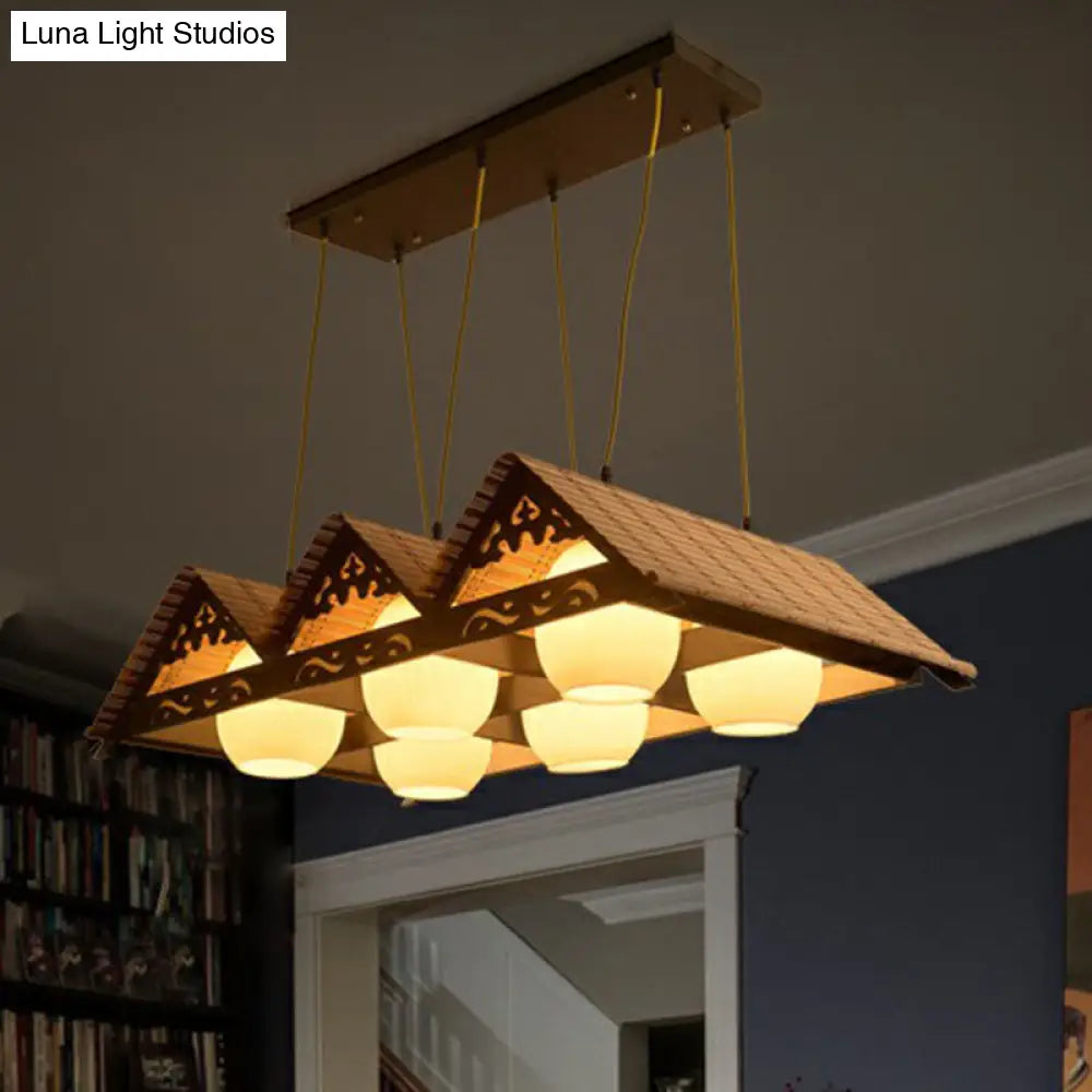 مصباح معلق على شكل جزيرة صينية من الخيزران من DecorBites™ لمطعم على سطح مثلث من الخشب