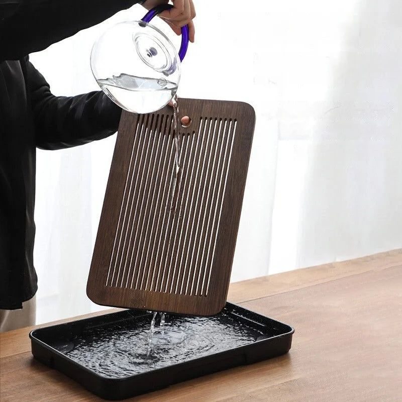 صينية شاي من الخيزران من DecorBites™: طقم شاي كونغ فو بسيط، استخدام مزدوج رطب/جاف، تخزين فعال