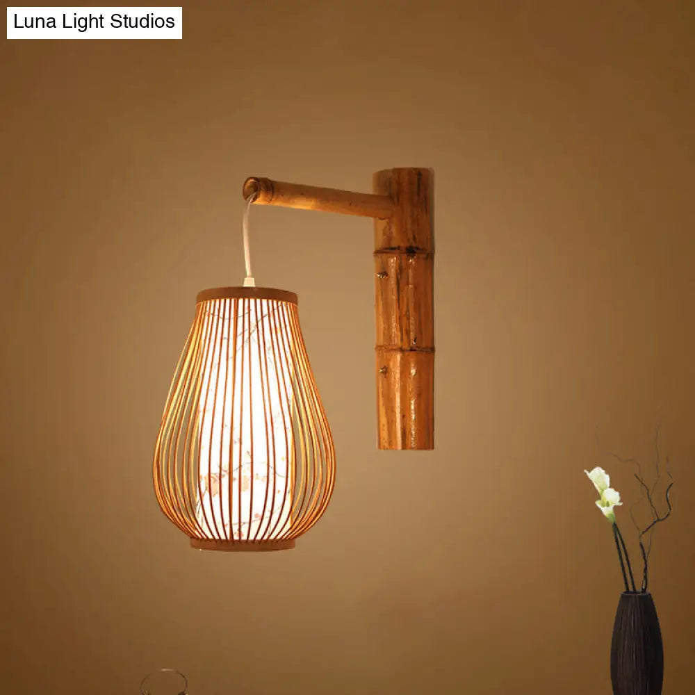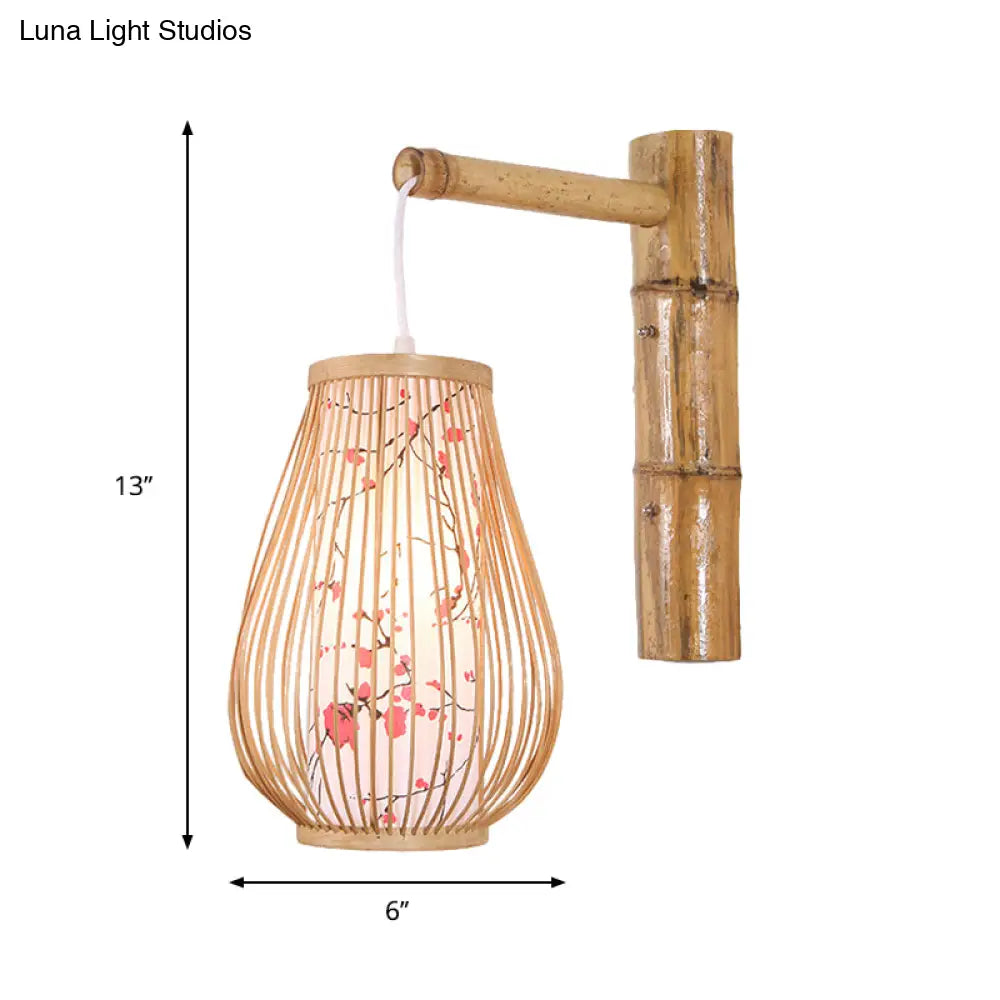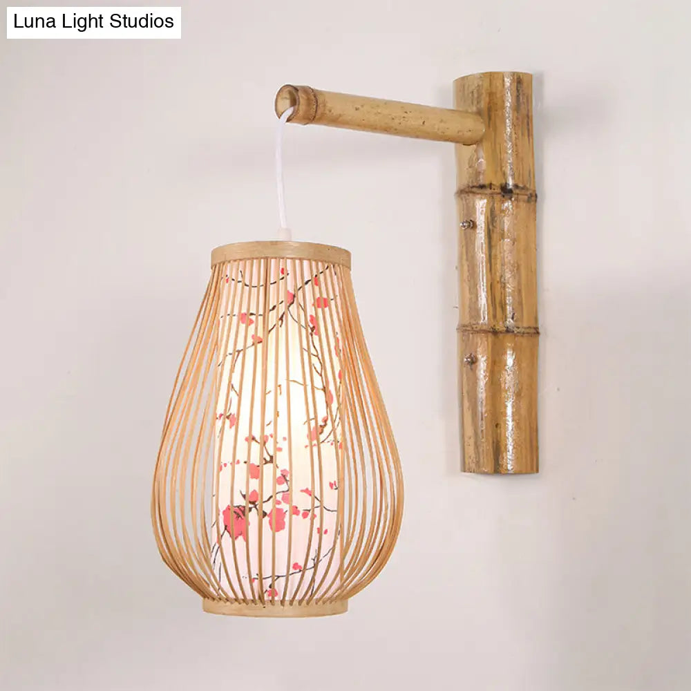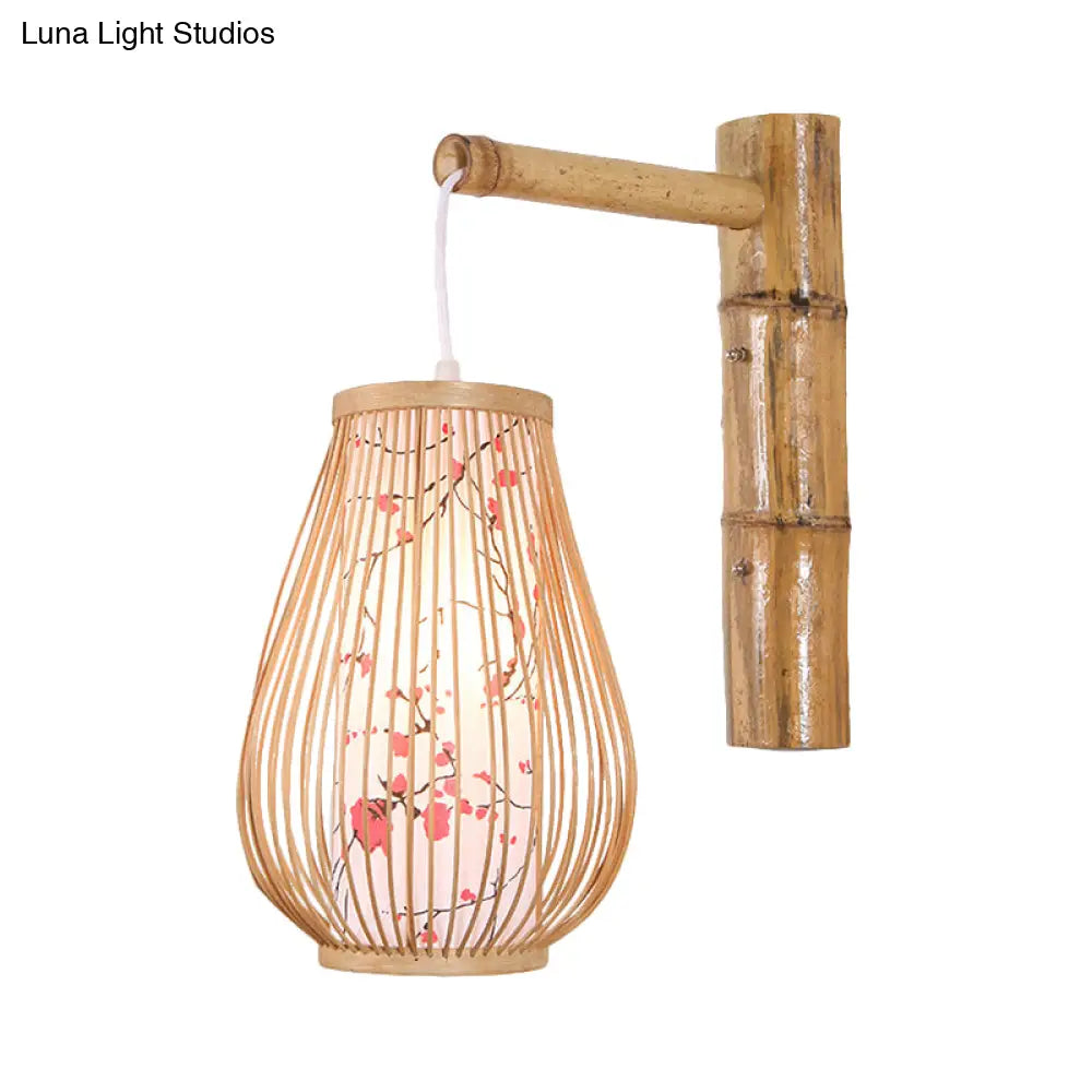 ديكوربايتس™ - مصباح حائط داخلي بيج مستوحى من الطراز الآسيوي مع غطاء أسطواني داخلي