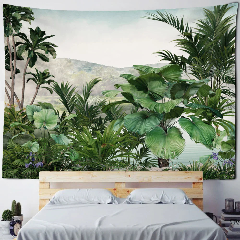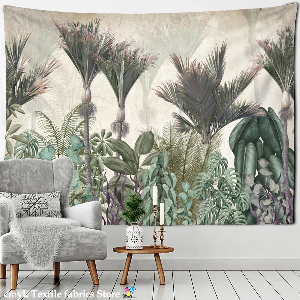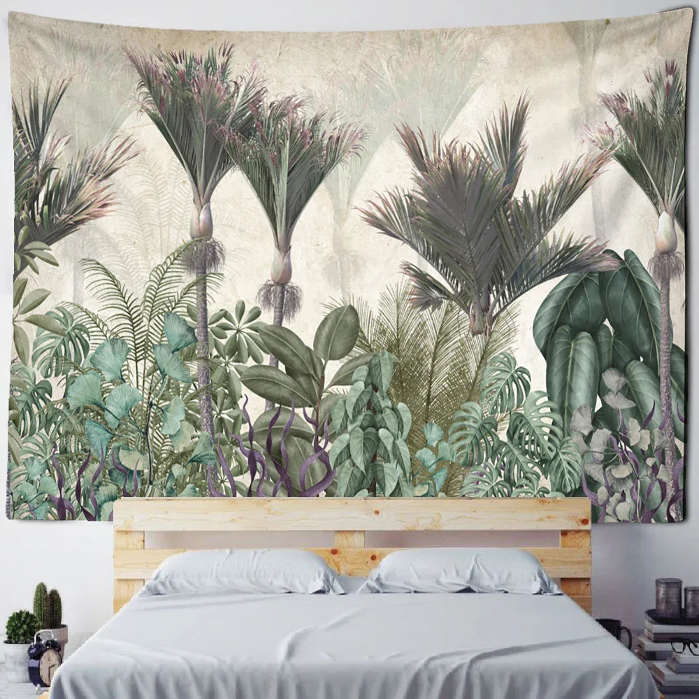 ديكور بايتس™ - نسيج شجرة الموز للتعليق على الحائط: لوحة زيتية هيبية مخدرة، وخلفية نباتية استوائية، وديكور بوهو
