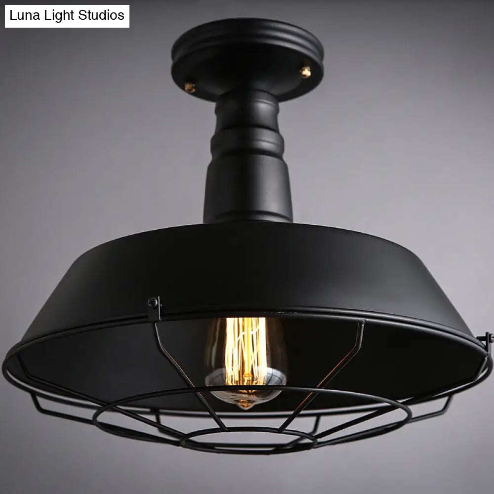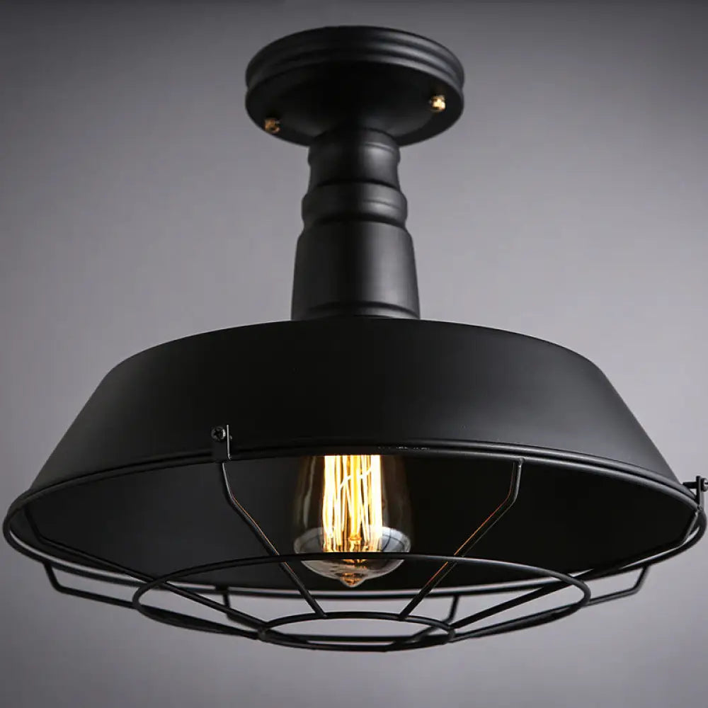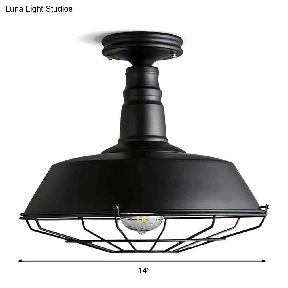 وحدة إضاءة صناعية سوداء معدنية شبه مستوية للحظيرة من DecorBites™ - عرض 10/14 بوصة