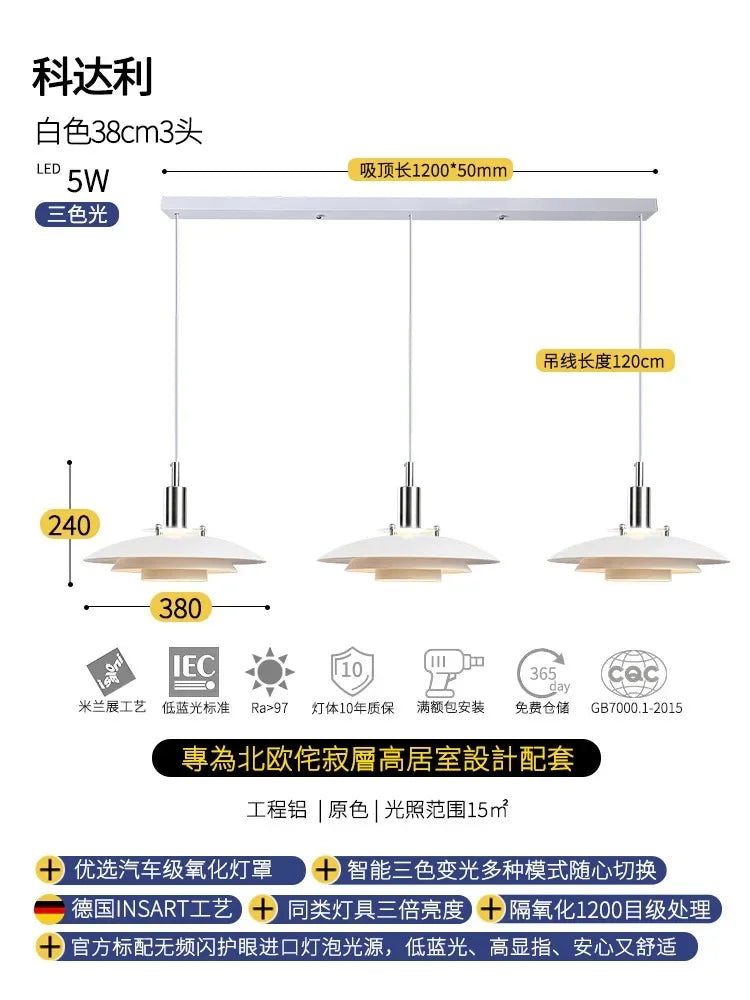 صُنع هذا المصباح المعلق من مواد عالية الجودة، ويتميز بلمسة نهائية أنيقة من الحديد، باللونين الأسود أو الأبيض. يتكامل غطاء المصباح المصنوع من الألومنيوم بشكل مثالي مع مصابيح LED، مما يوفر توهجًا ناعمًا وجذابًا لإضاءة محيطك. بمساحة إضاءة تتراوح بين 5 و10 أمتار مربعة، يُعد هذا المصباح المعلق مثاليًا لخلق جو مريح وأنيق.