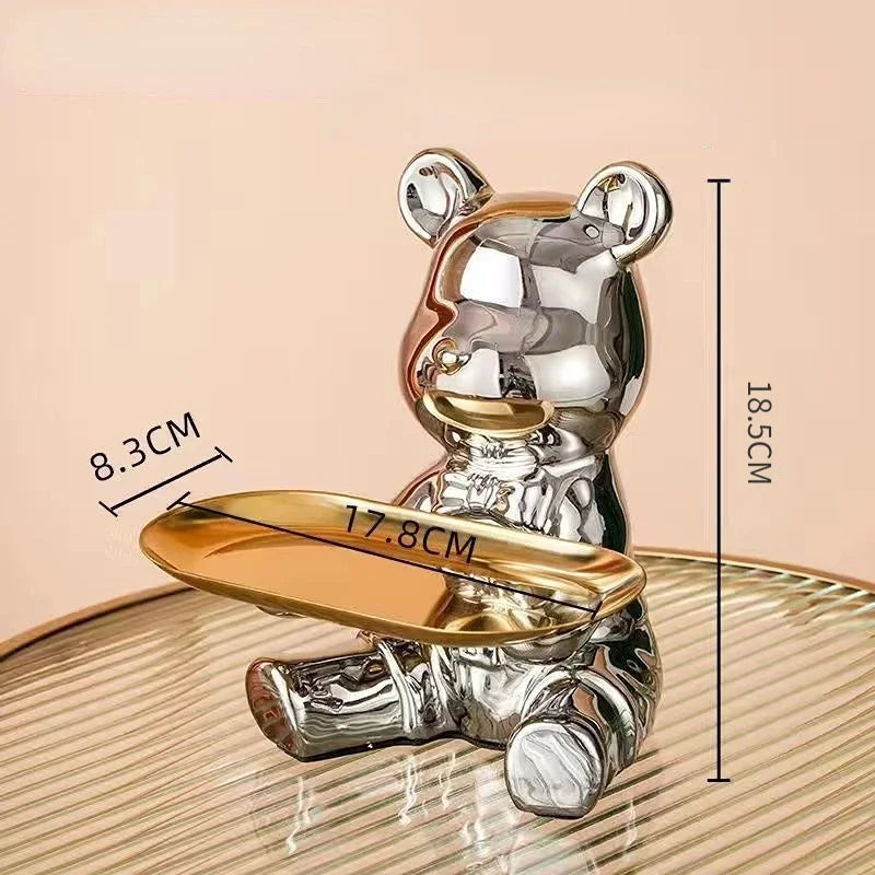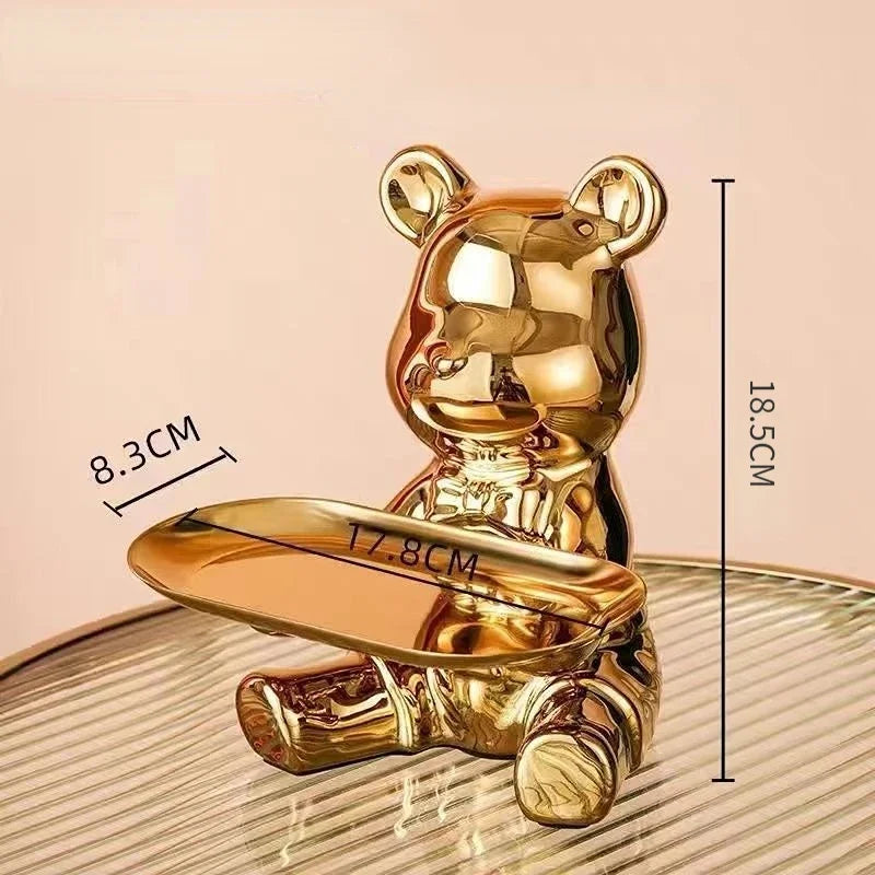 صينية تخزين على شكل دمية دب من DecorBites™، حصالة نقود، وجبات خفيفة، مكياج، حامل مفاتيح، إكسسوار ديكور منزلي