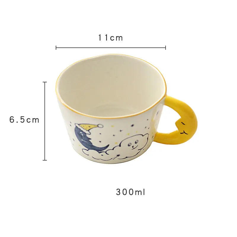نقدم لكم كوب السيراميك "دب القمر"، إضافة رائعة لمجموعة أدوات مطبخكم. هذا الكوب الجميل المرسوم يدويًا ينضح بالسحر والأناقة، مثالي لإضفاء لمسة من المرح على روتينكم الصباحي.