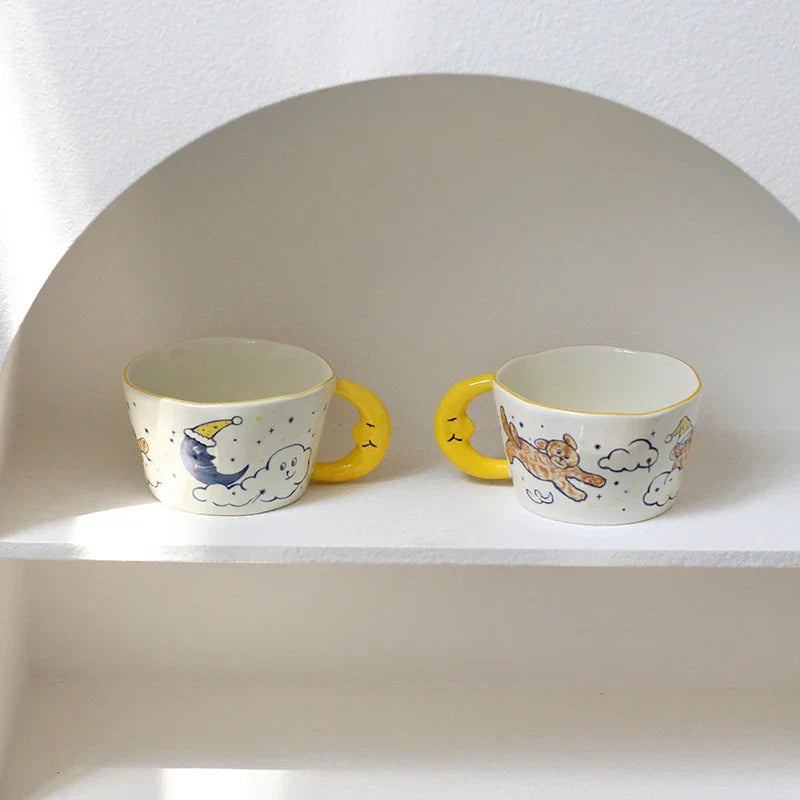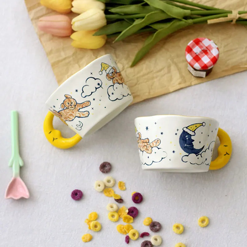 كوب سيراميك على شكل دب وقمر من ديكوربايتس™: كوب قهوة لطيف مرسوم يدويًا لأدوات الشرب في المطبخ