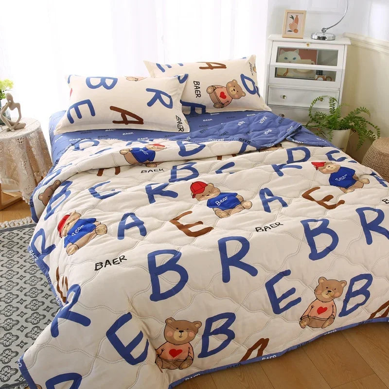 طقم لحاف وغطاء وسادة بتصميم دب من ديكوربايتس™ - أغطية سرير صيفية ناعمة وجيدة التهوية