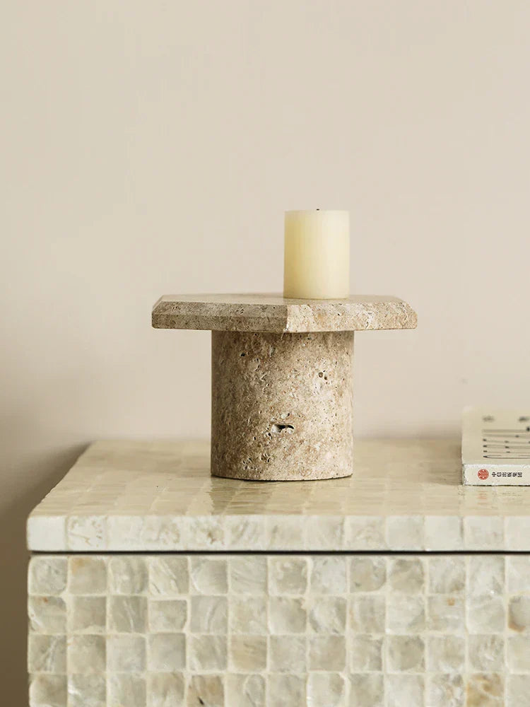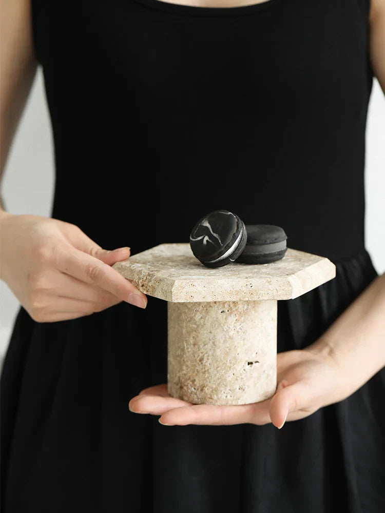 صينية تقديم سداسية الشكل من حجر الترافرتين باللون البني والبيج من DecorBites™، طبق مجوهرات، ديكور منزلي للحفلات