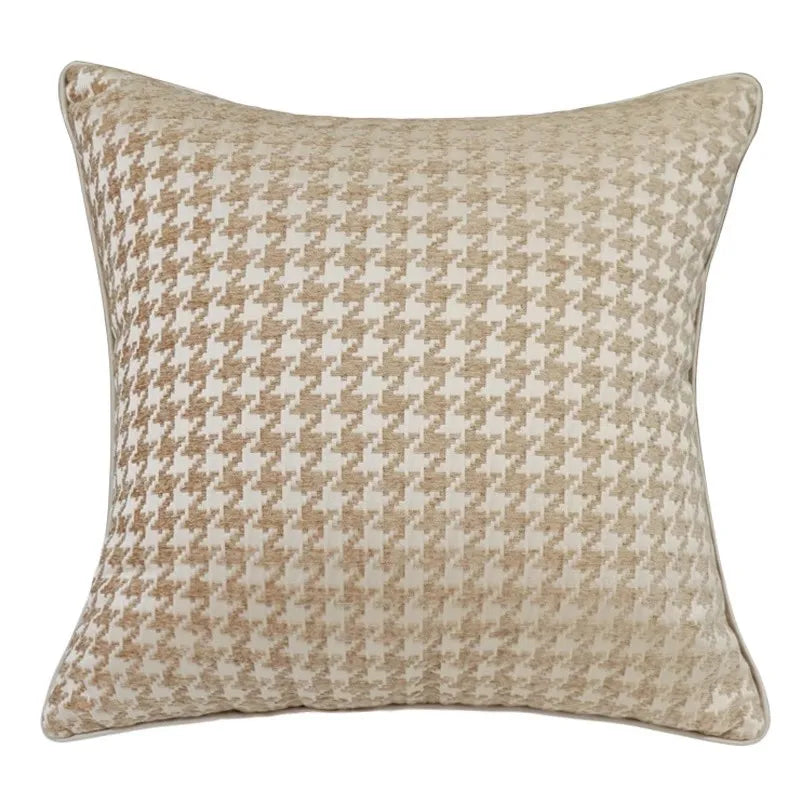 ارتقِ بديكور منزلك مع غطاء وسادة ديكوربايتس الفاخر من الجاكار بنقشة هاوندستوث باللون البيج الذهبي. مصنوع من أجود أنواع البوليستر 100%، ينضح هذا الغطاء بالرقي والأناقة في كل خيط.