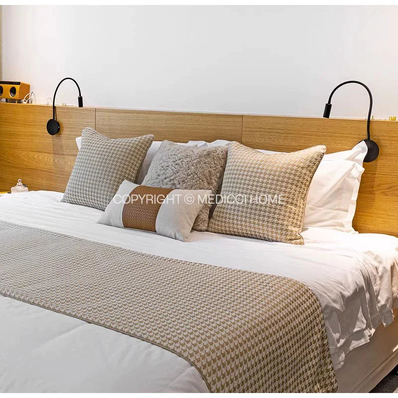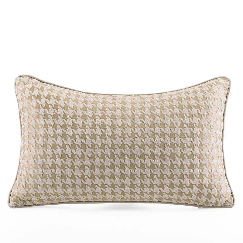 غطاء وسادة قطني من قماش الجاكار بنقشة مربعات باللون البيج الذهبي من DecorBites™ للديكورات الداخلية العصرية