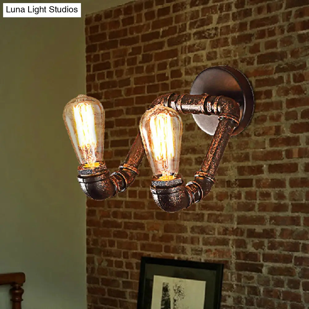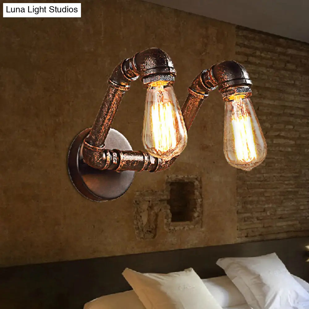 ديكوربايتس™ مصباح حائط معدني صناعي مزخرف بأنابيب منحنية - لمسة نهائية برونزية، 2 مصباح - وحدة إضاءة مثبتة على الحائط للحمام